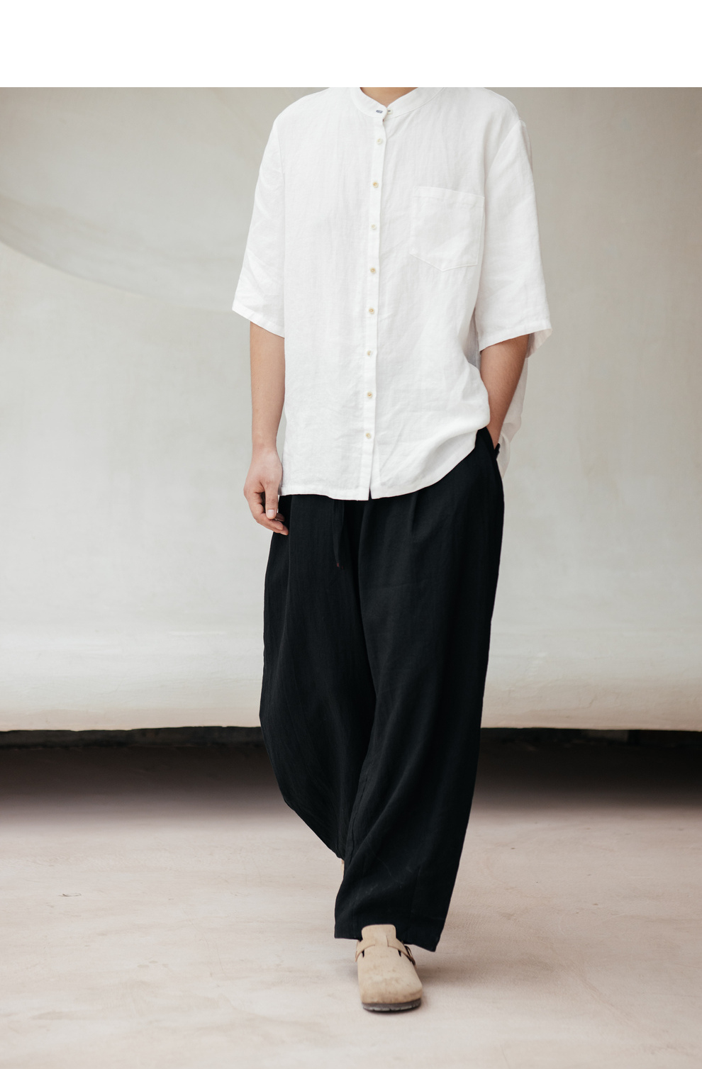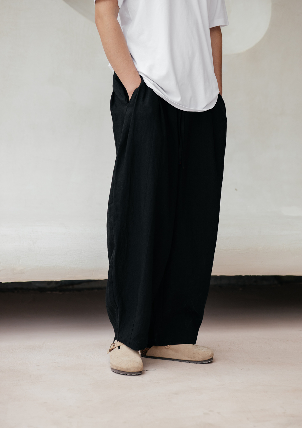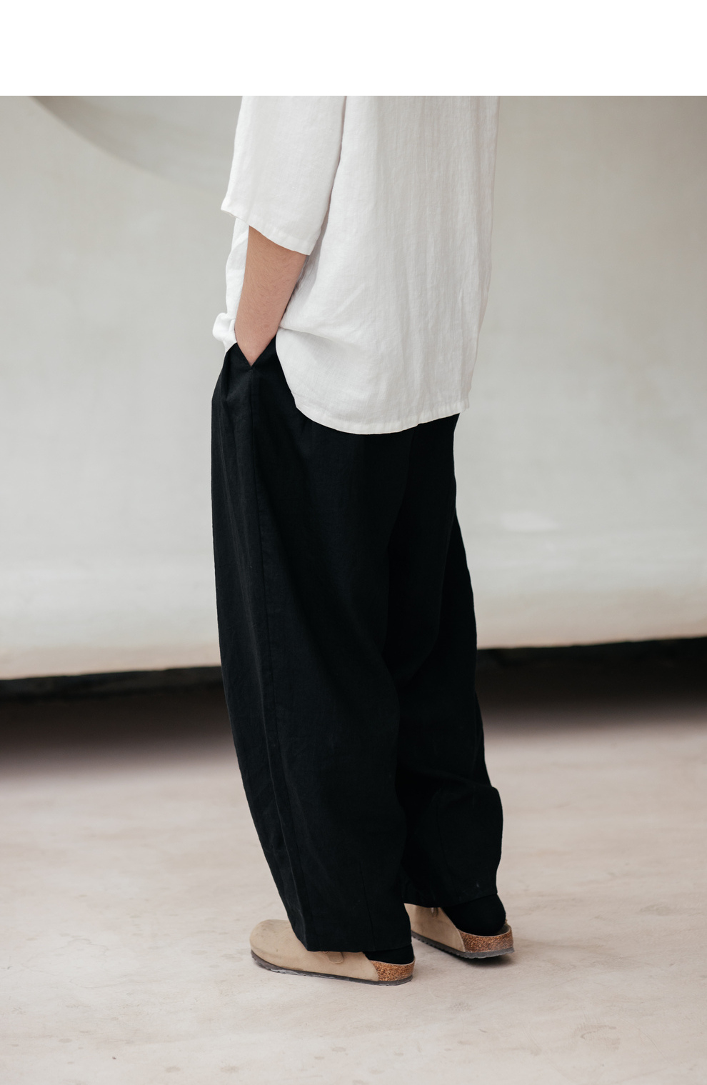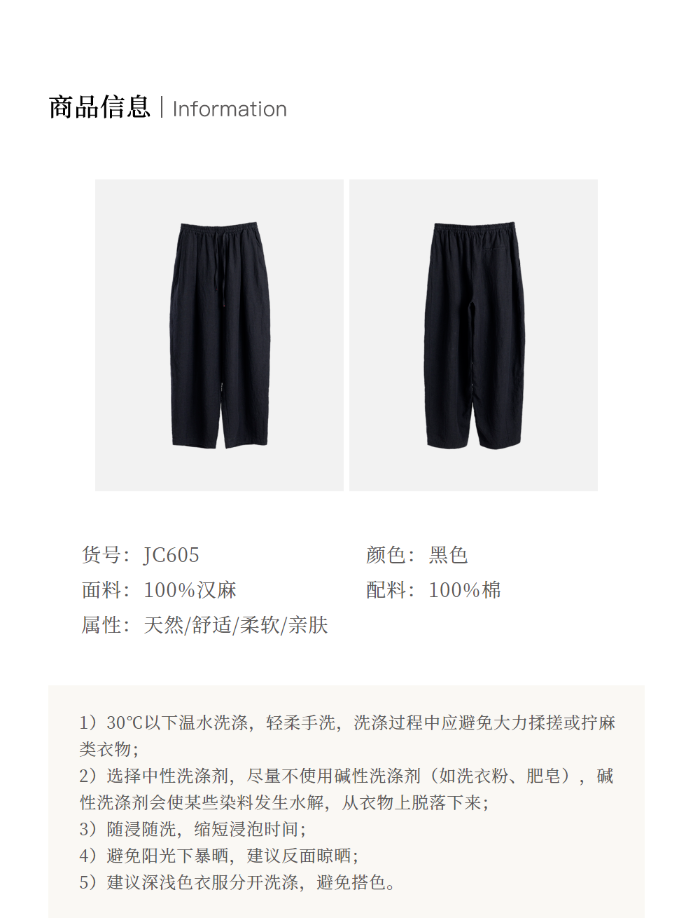 绽放605朵【黑白灰】2025汉麻黑色弯刀阔腿裤显瘦百搭男装休闲裤