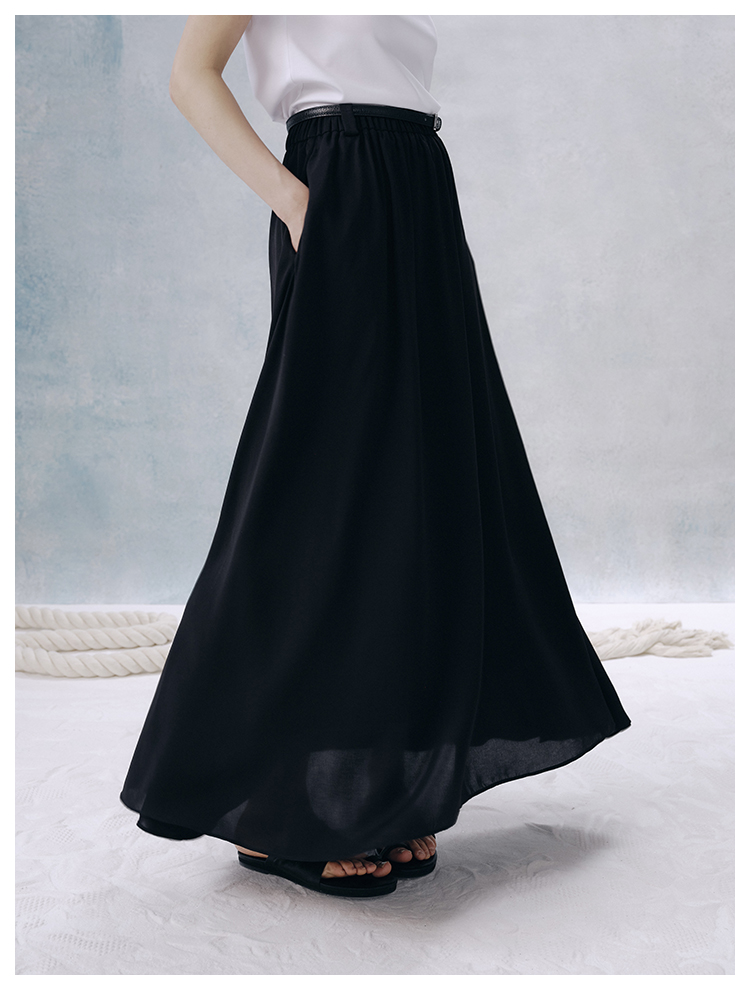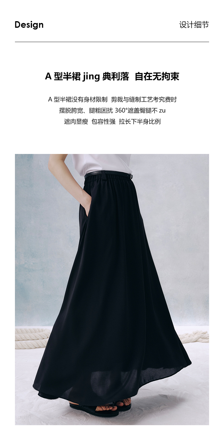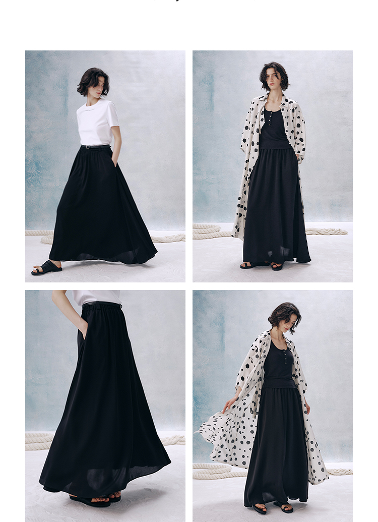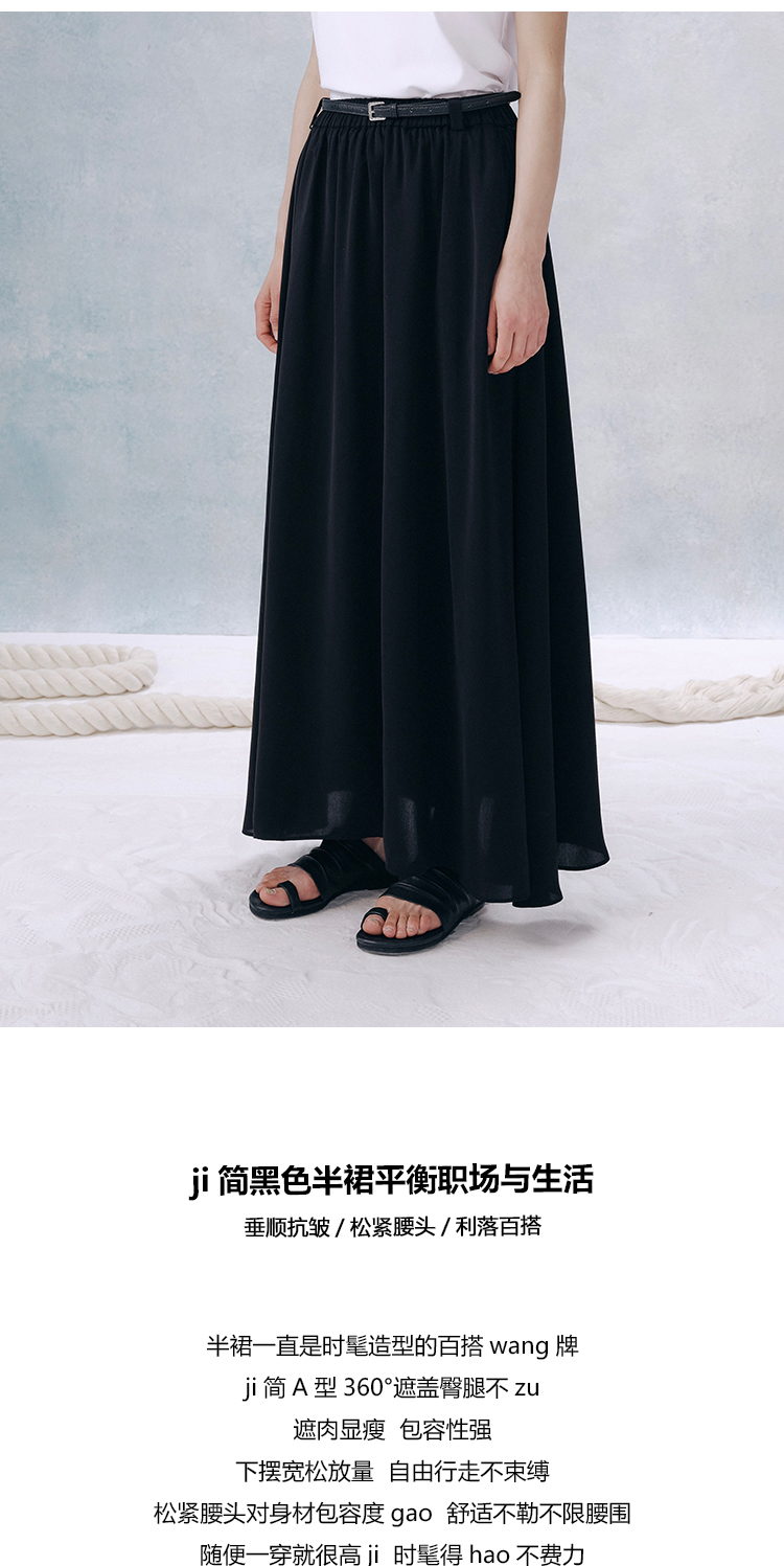 UMILAB【夜曲】垂顺抗皱懒人穿搭松紧腰藏肉显瘦百搭半裙D789M
