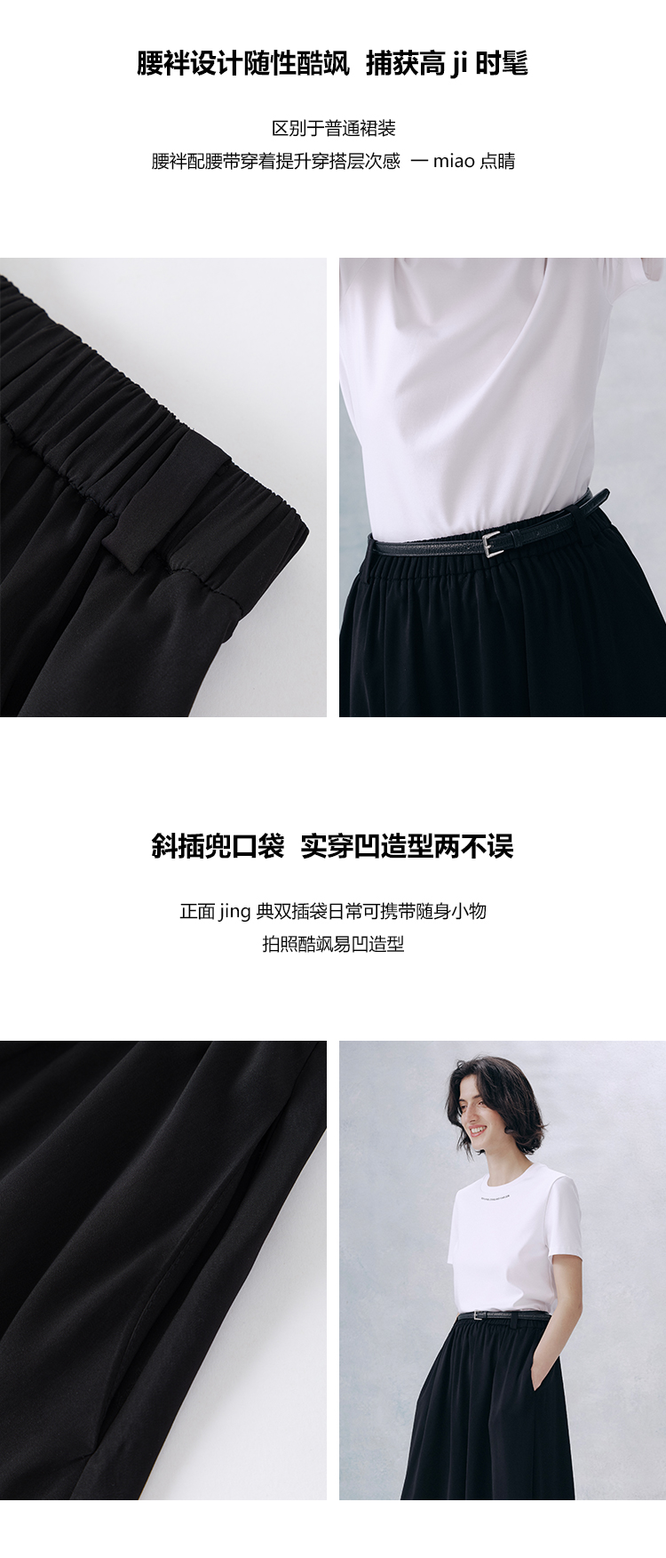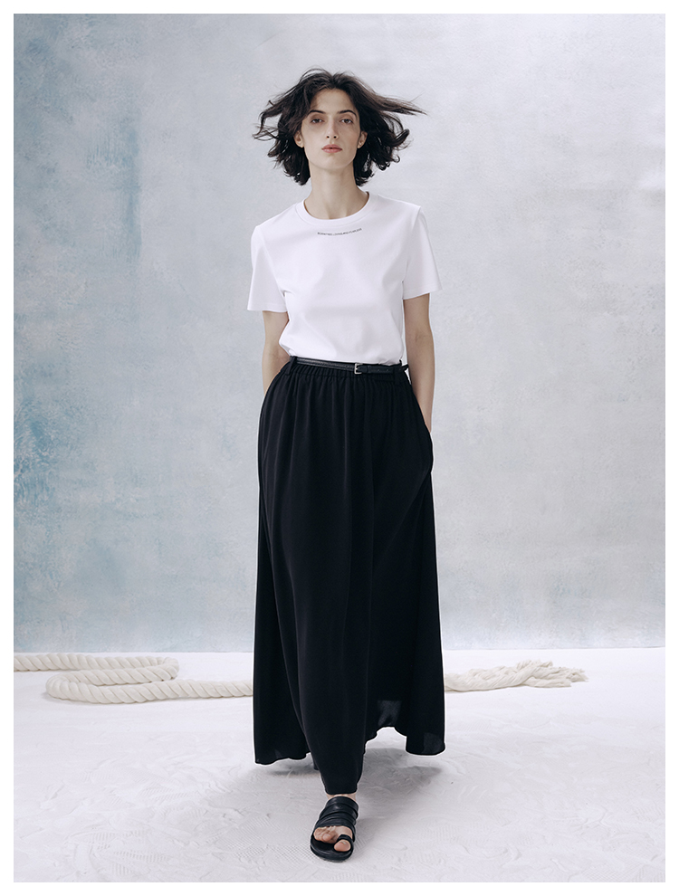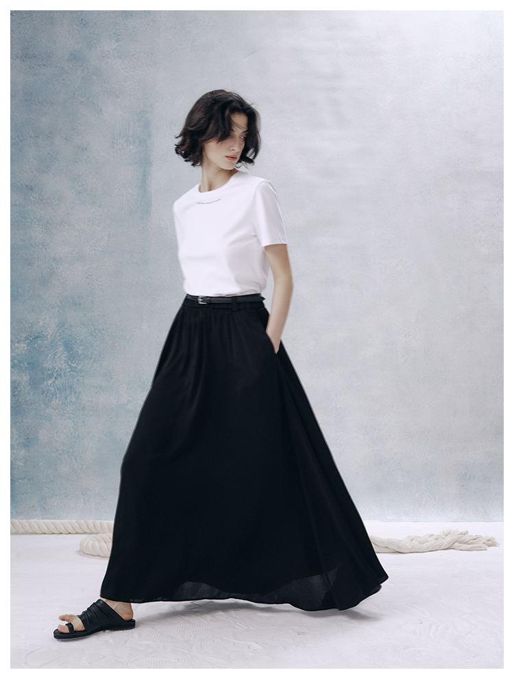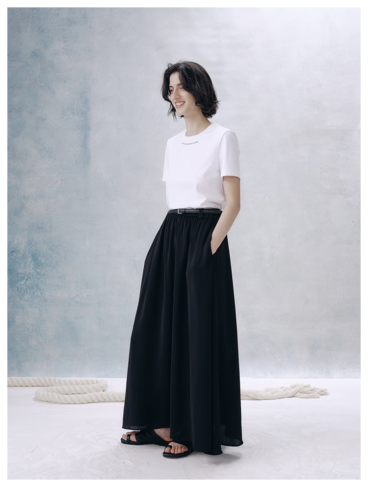 UMILAB【夜曲】垂顺抗皱懒人穿搭松紧腰藏肉显瘦百搭半裙D789M