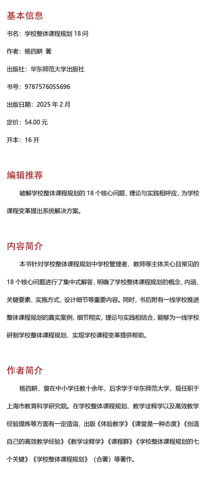 学校整体课程规划18问 杨四耕著 学校课程变革 课程决策