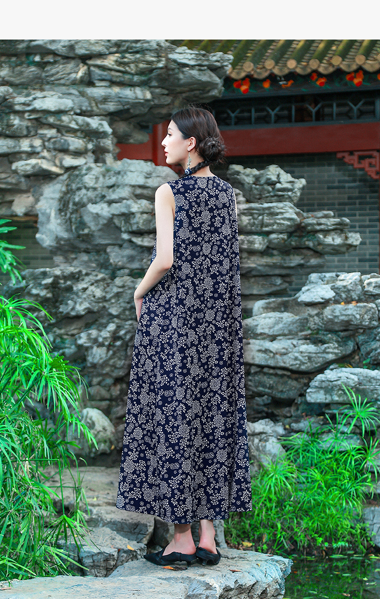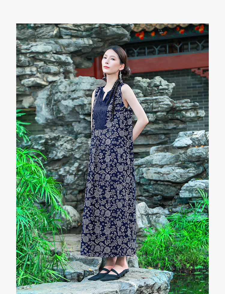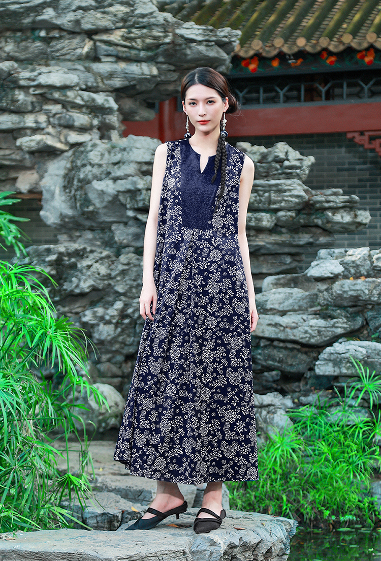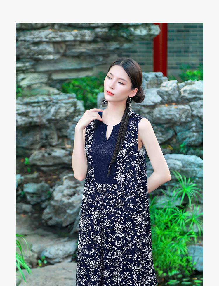 【蓝染印花改良系列】篱笙无袖连衣裙 | 现货加急发