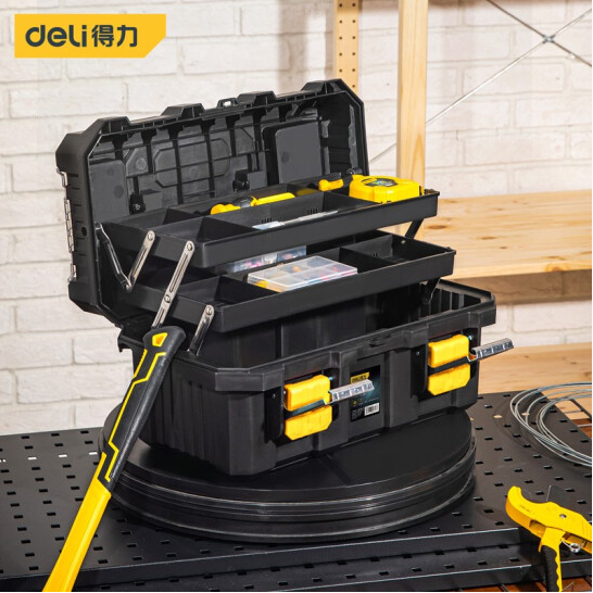得力加强折叠工具箱三层(黄)