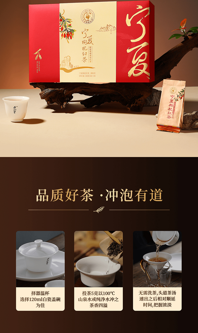 正山堂 宁夏枸杞红茶礼盒装 配伍普安红茶正宗枸杞叶茶叶100g/180g