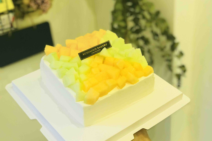 这款蛋糕主要由三种夏天时令水果组成:蜜瓜、玫珑瓜、西瓜,每一款都清爽多汁;四方的外型,像极了一块瓜田。(注意:3种瓜果任选其2,本文图片均为:蜜瓜+玫珑瓜)