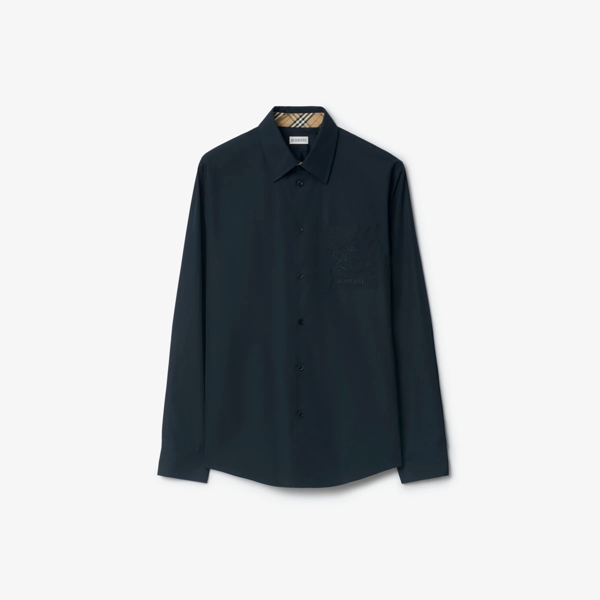 以经典重塑日常。将品牌标志性格纹藏于领间,用高支棉承载利落廓形,胸前刺绣徽标低调点睛。