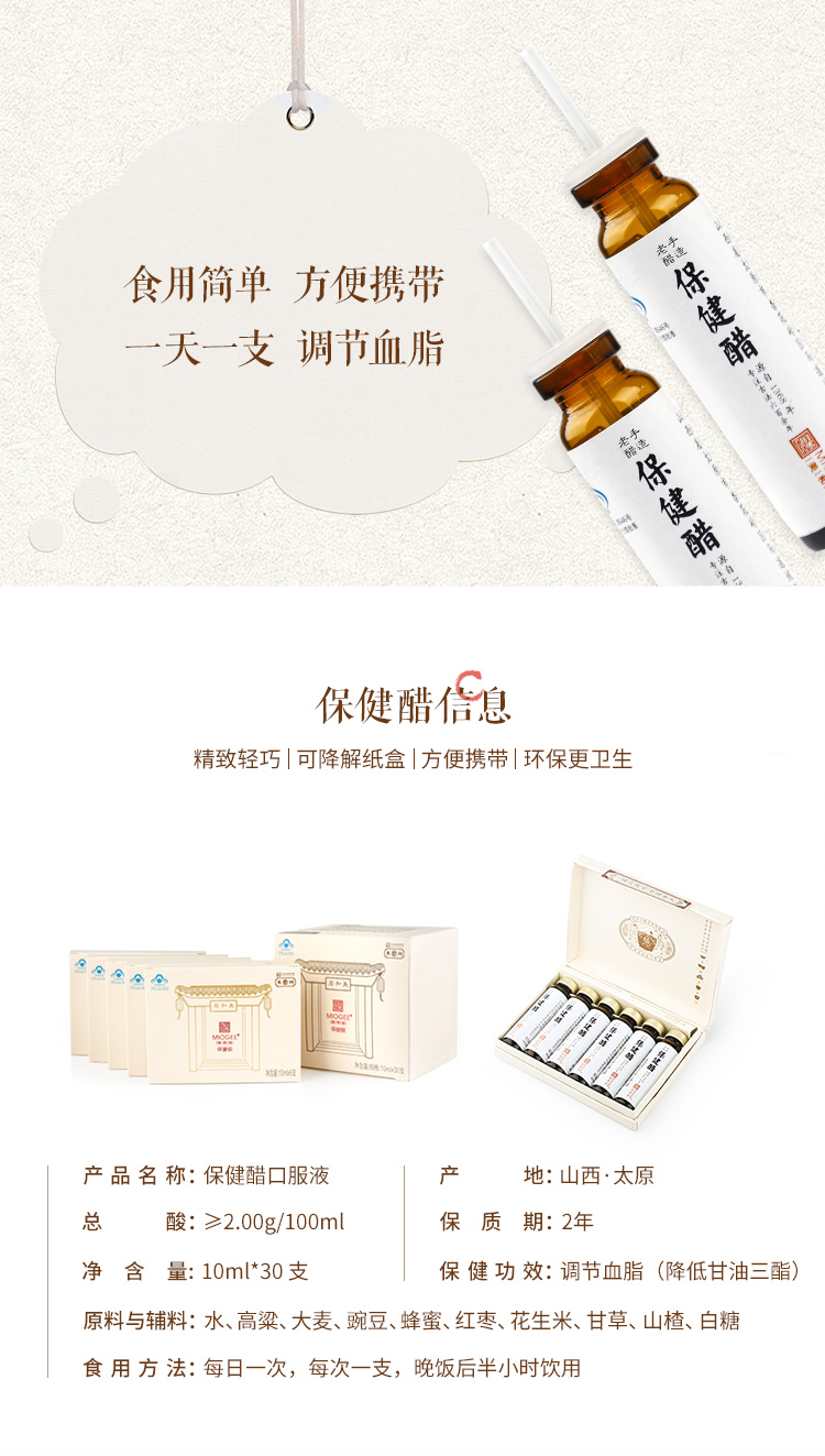 【美和居】保健醋养生醋口服液调节血脂山西老陈醋蜂蜜醋10mLx30