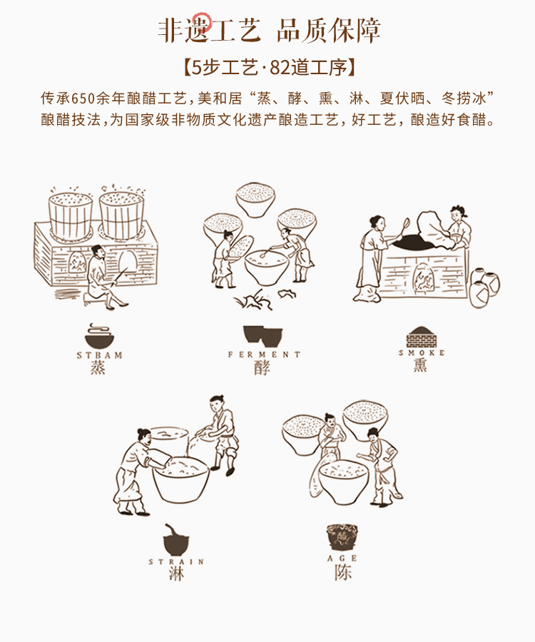 - 美和居始创于1368年,为山西老陈醋开创者,国家级非物质文化遗产酿制技艺,国家地理标志保护产品!