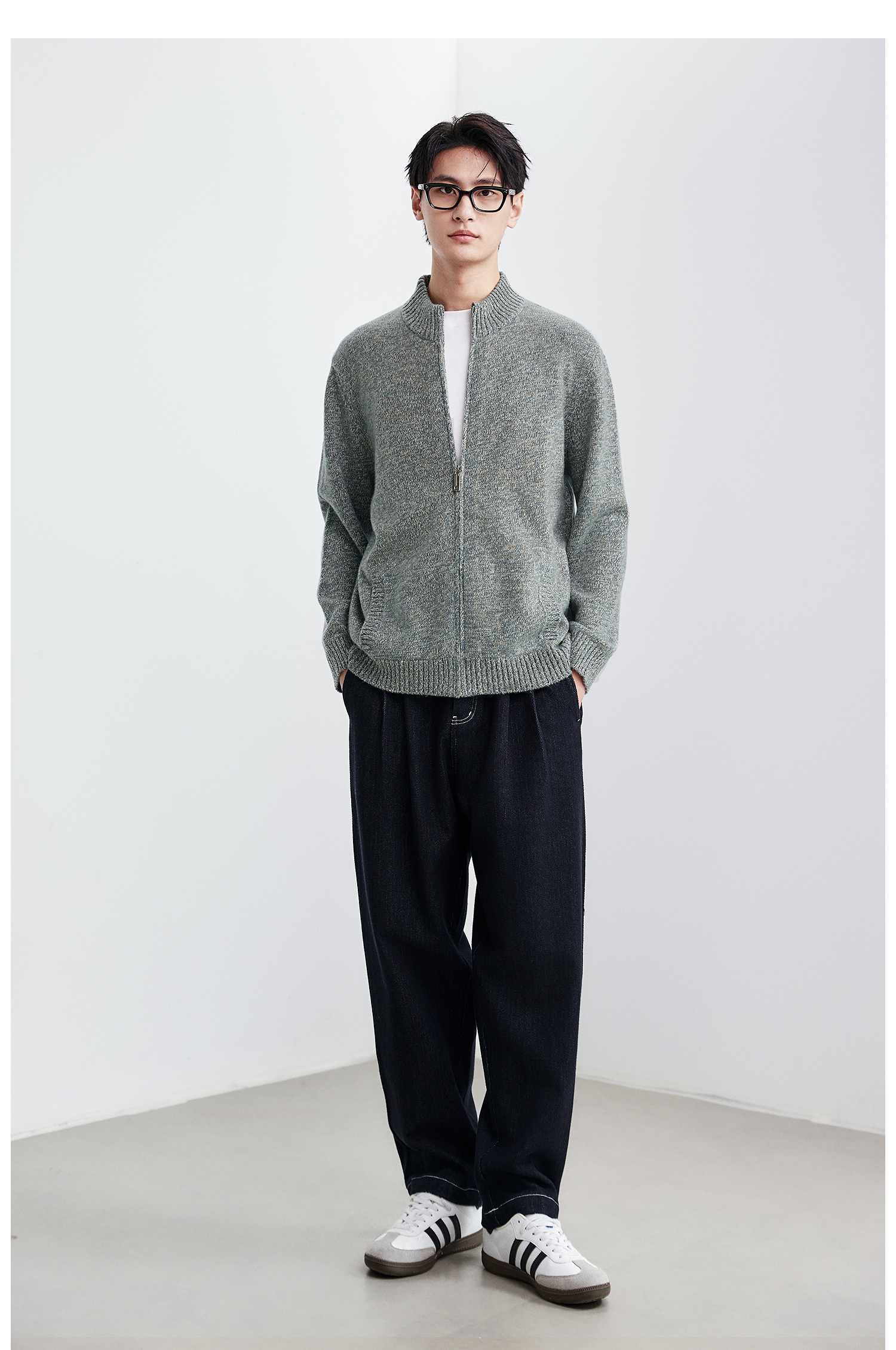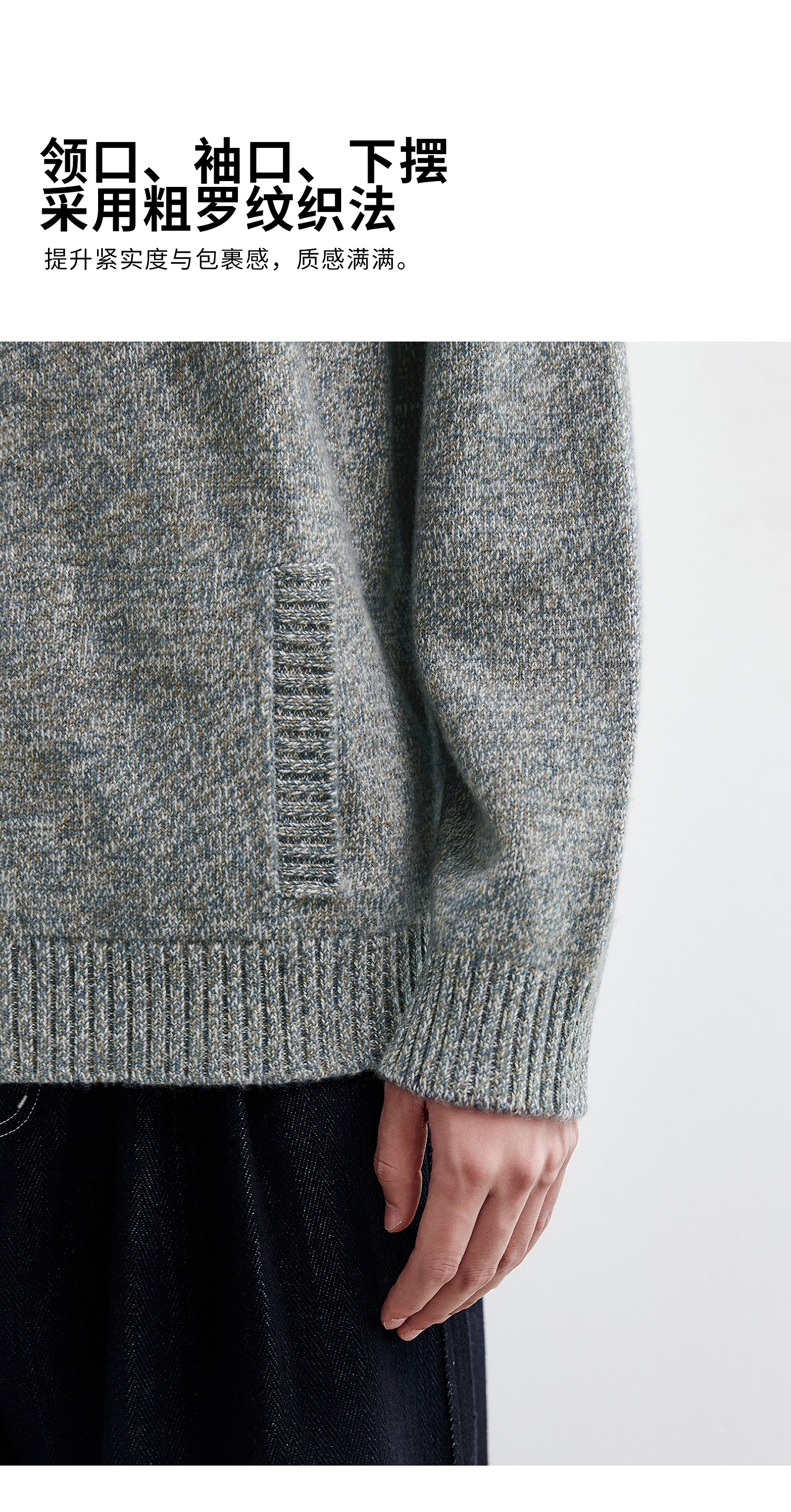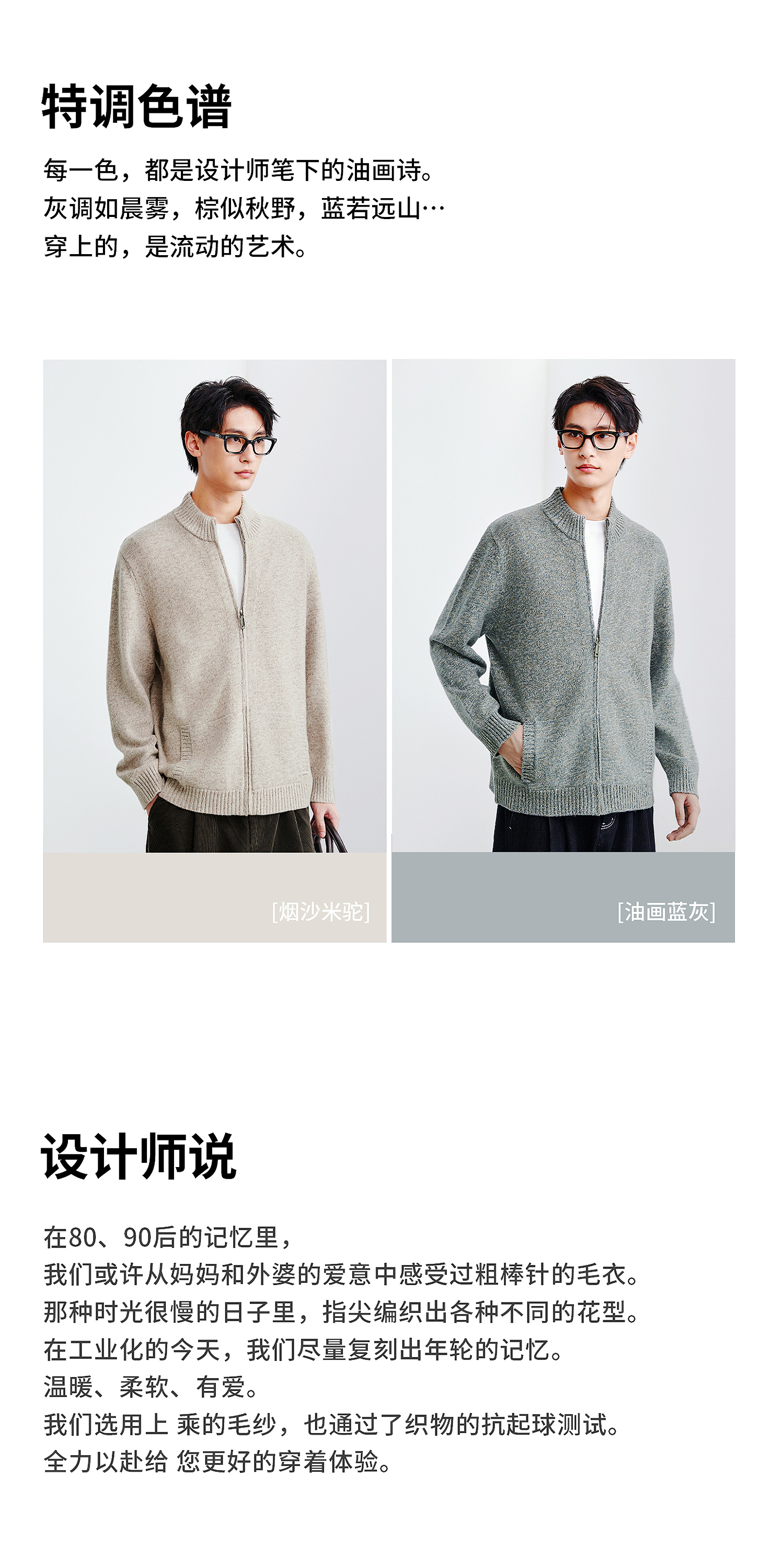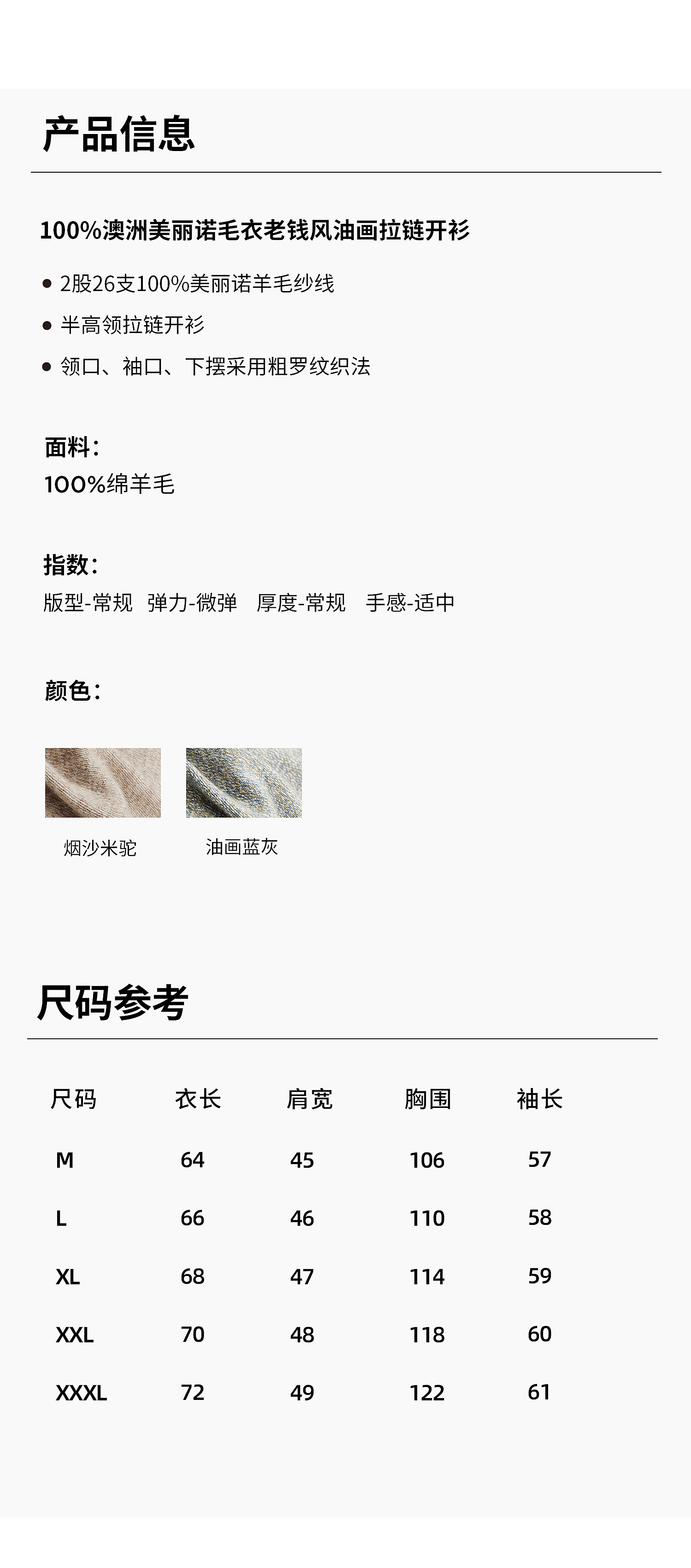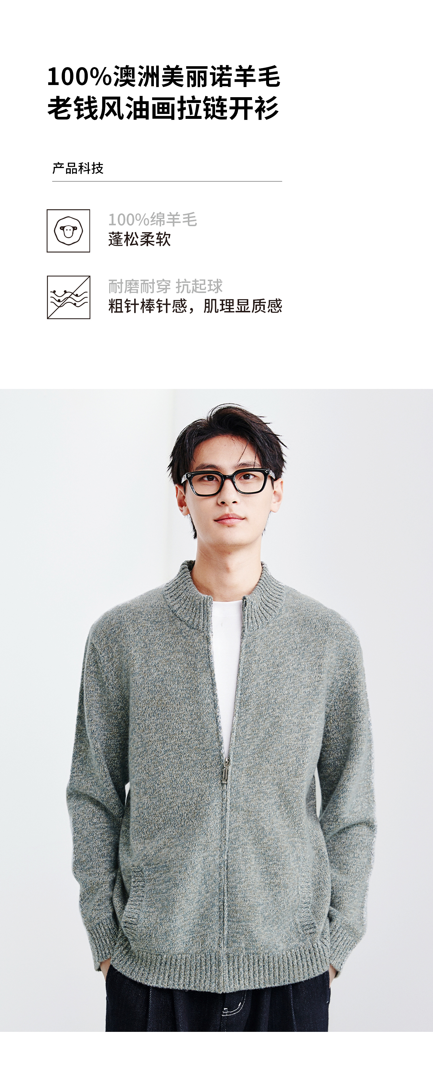 棉仓367826049-100%澳洲美丽诺羊毛老钱风油画拉链开衫