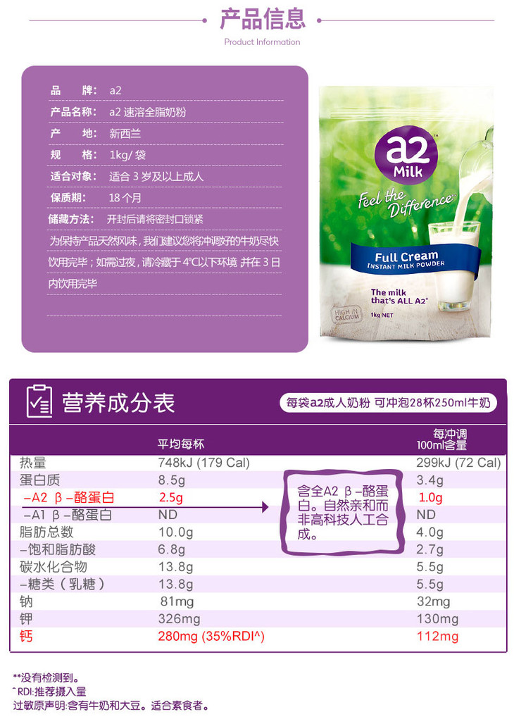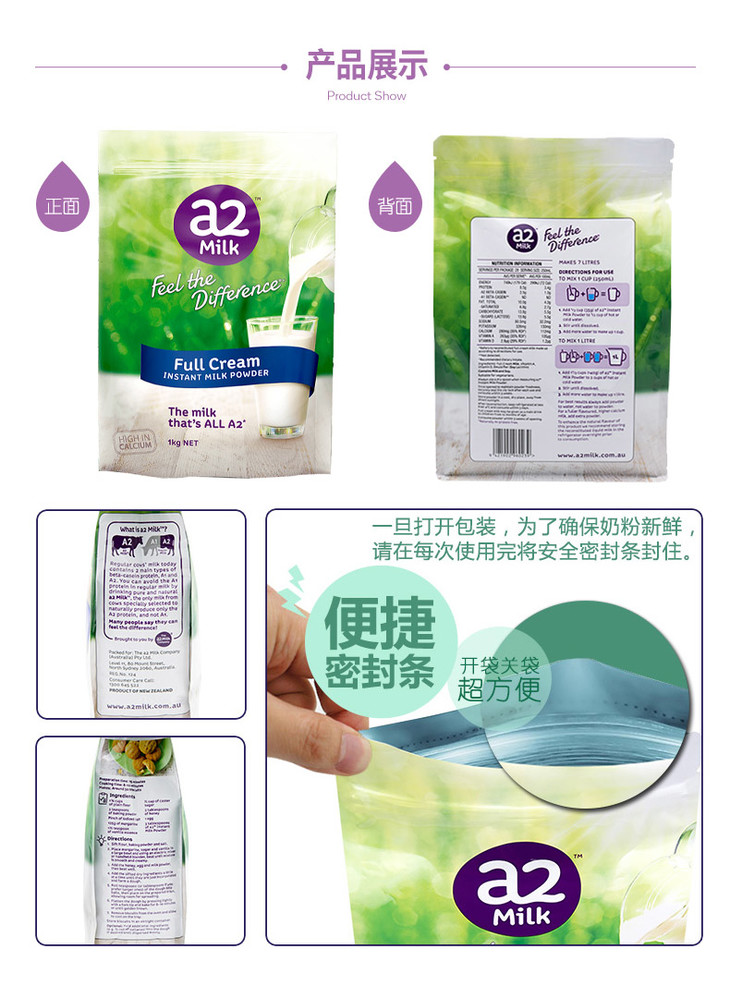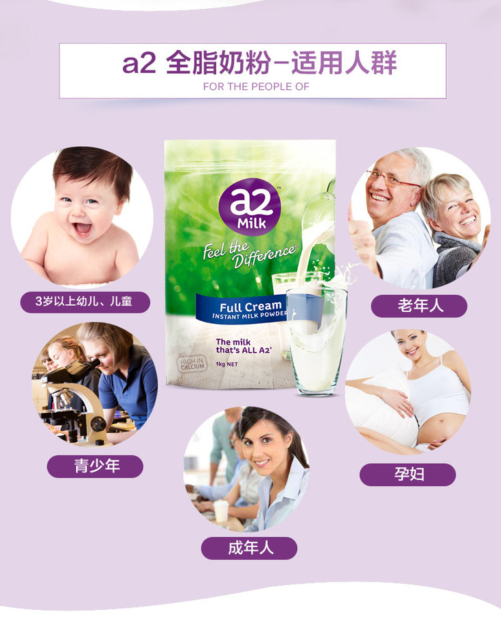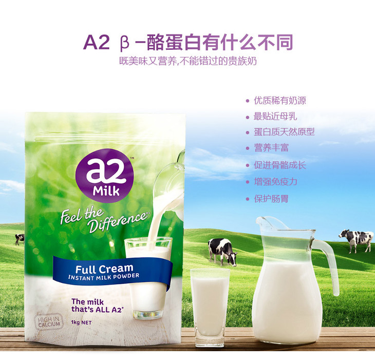 2袋更划算【新包装】澳洲 a2成人全脂奶粉 1KG 营养易吸收