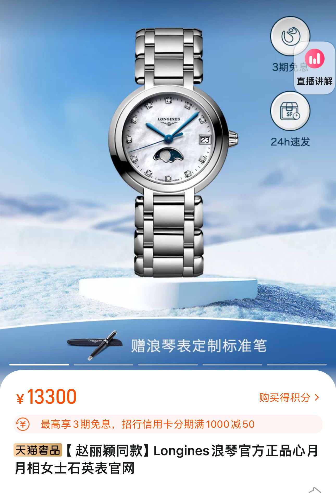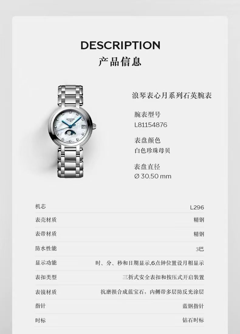 浪琴经典心月月相石英女士手表
