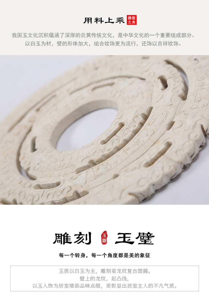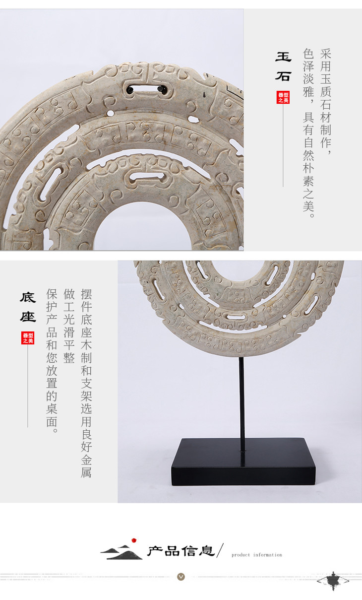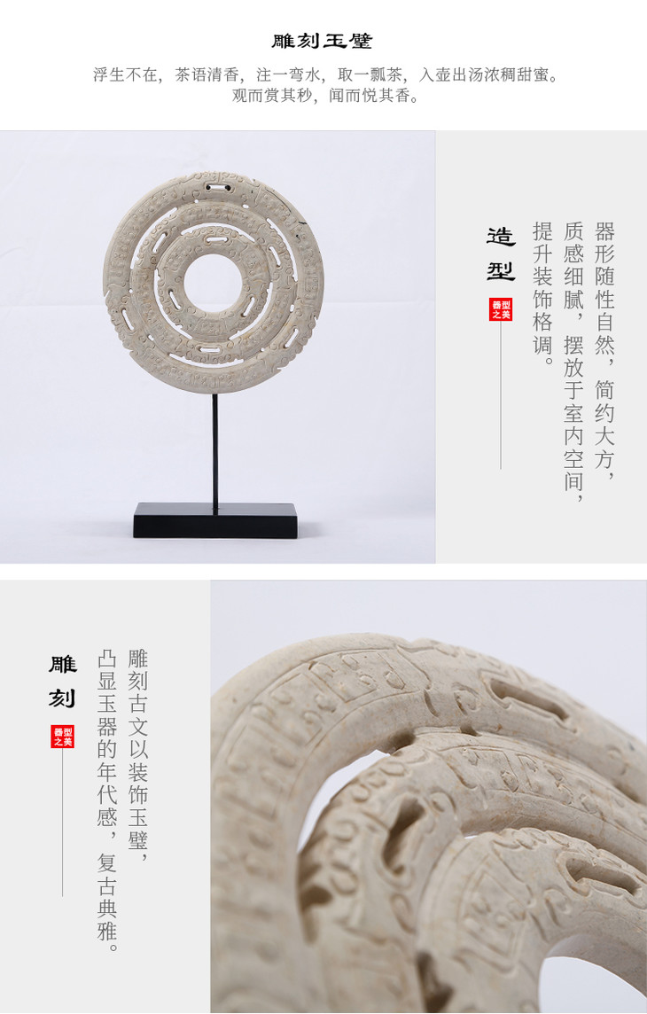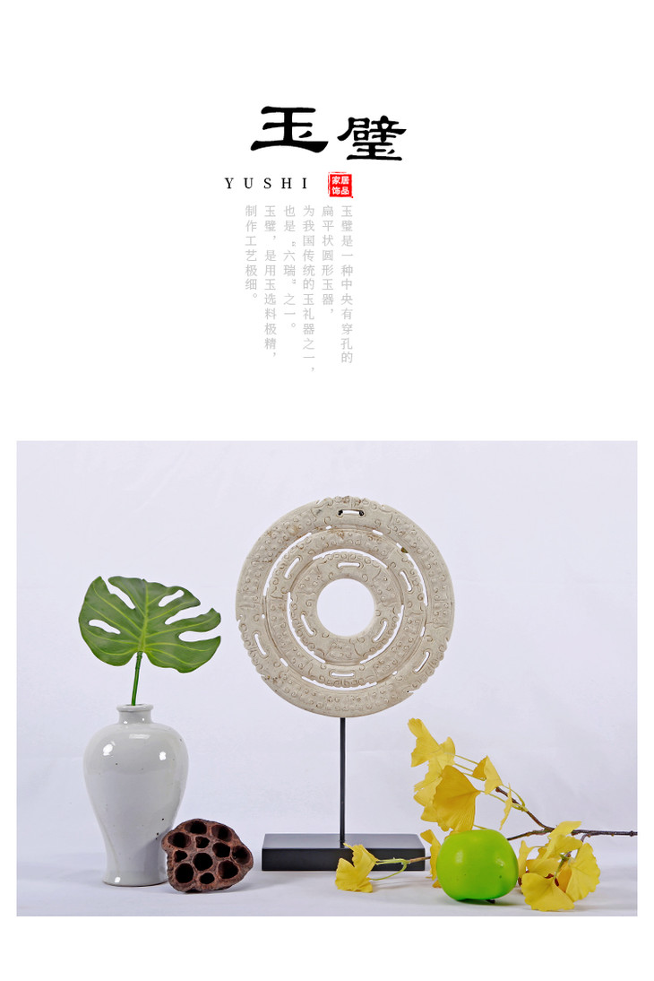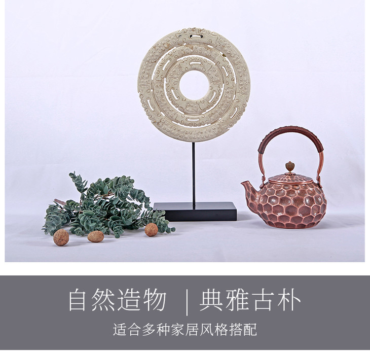 仿古做旧雕刻玉璧家居玄关玉片摆件