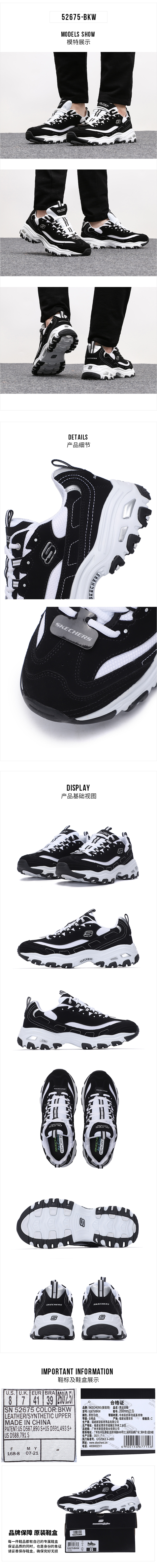 斯凯奇D'LITES 1.0时尚绑带运动鞋/熊猫鞋 男款黑白色