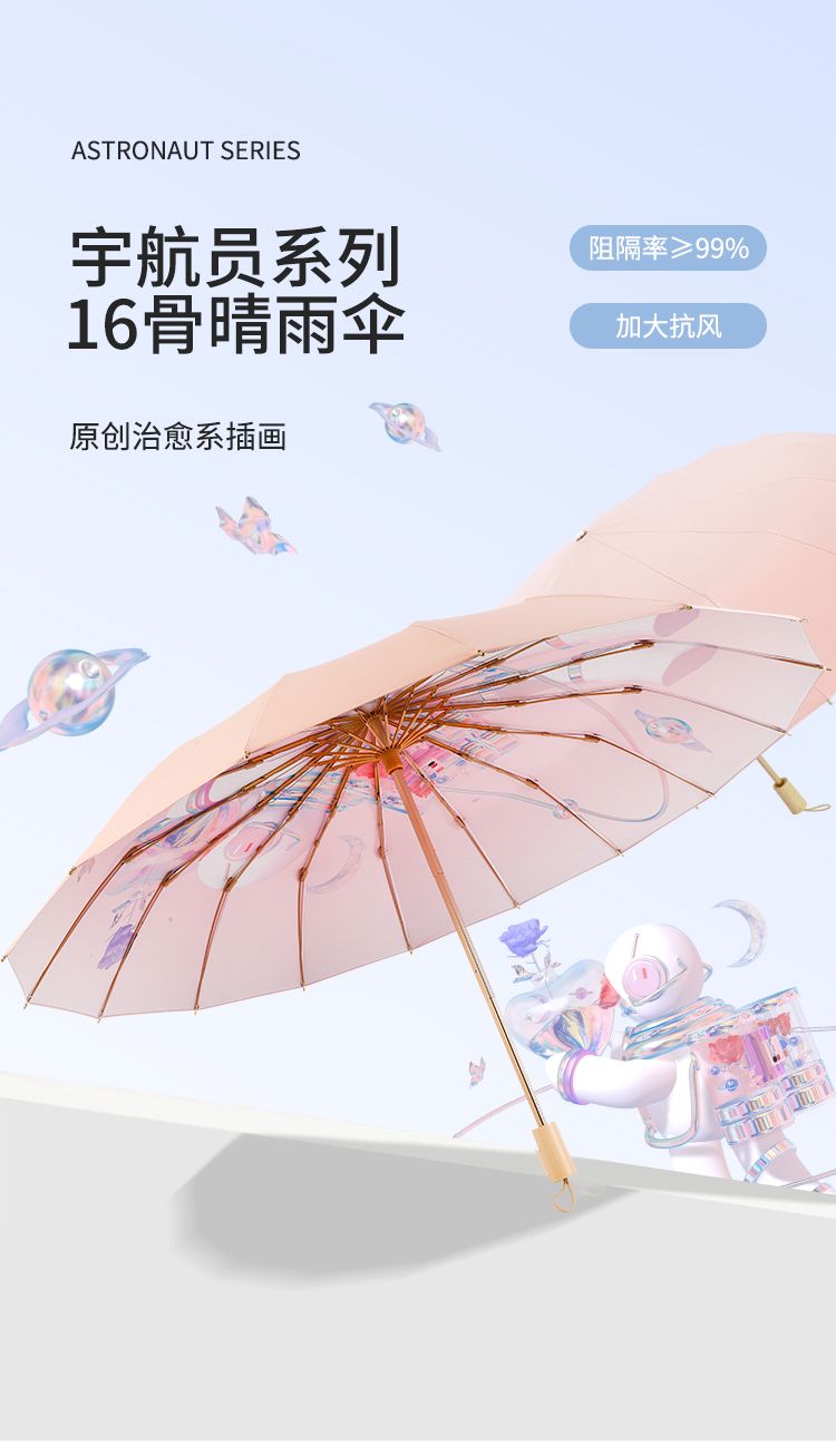 16骨铝合金手动式雨伞晴雨两用新国风防雨伸缩式便宜耐用防紫外线