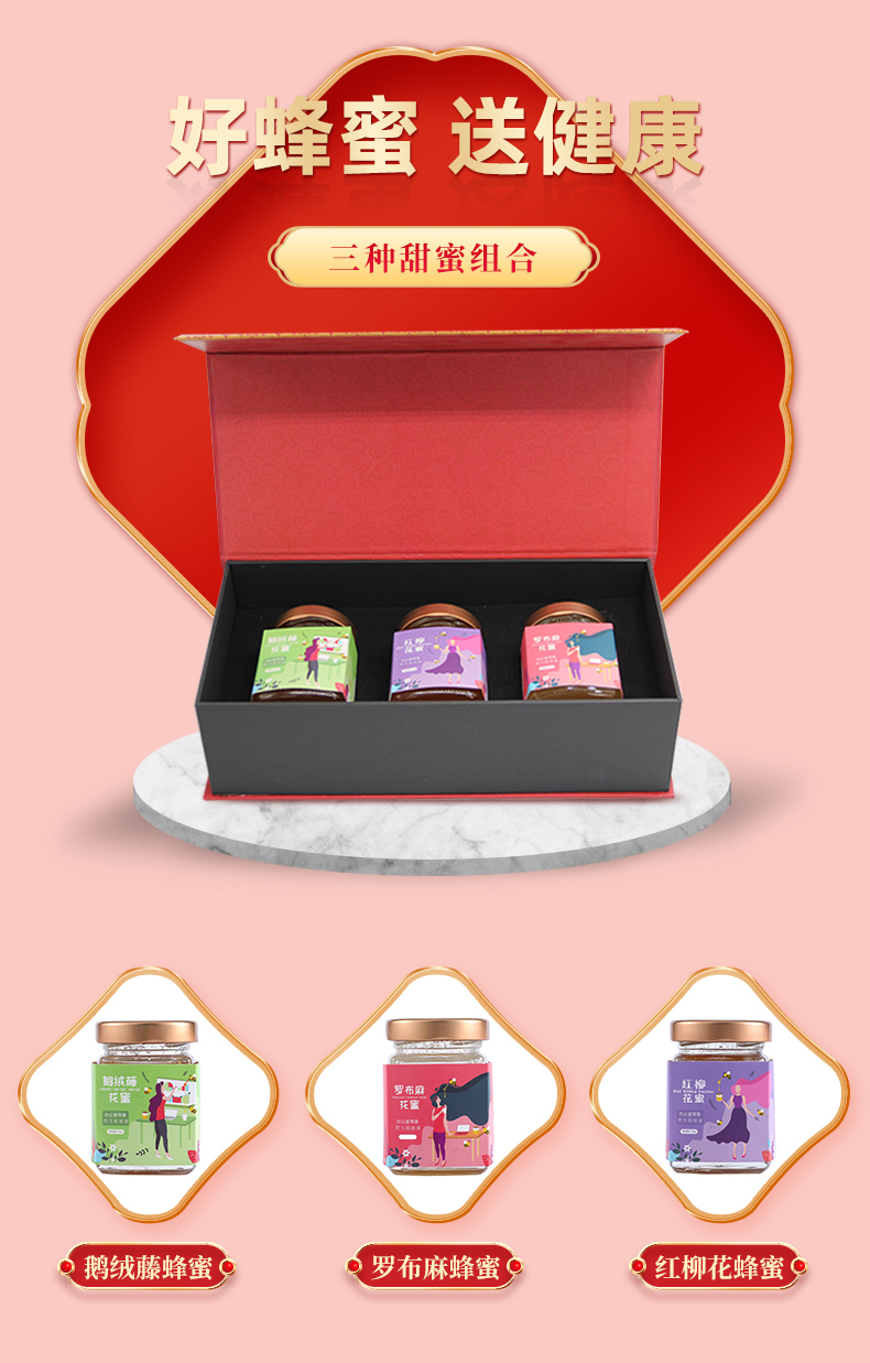 【规格】150g*3瓶(罗布麻花蜜150g,鹅绒藤花蜜150g,红柳花蜜150g)
