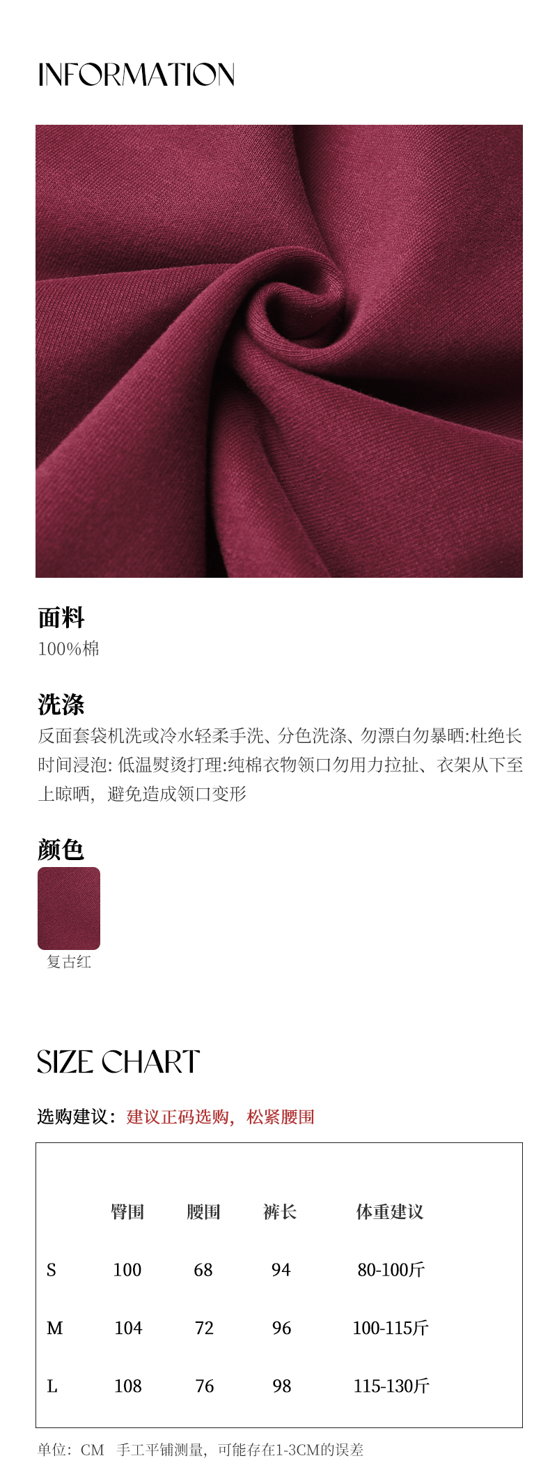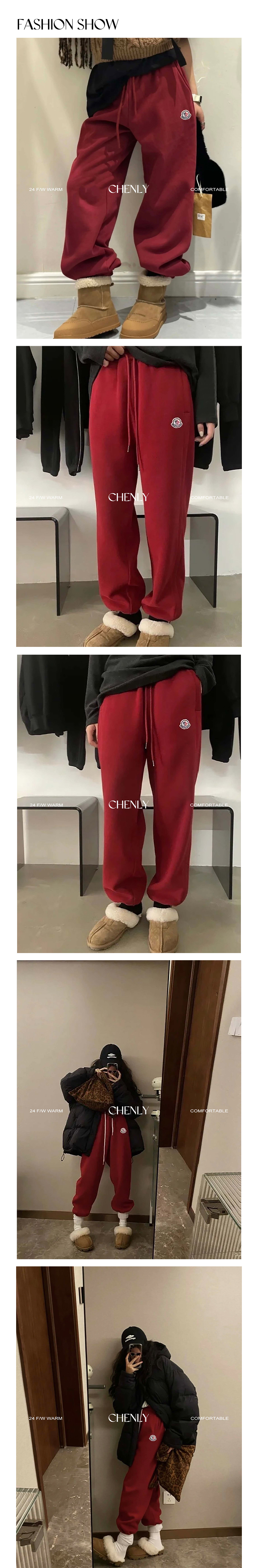 尘衣|复古红加绒松紧腰卫裤