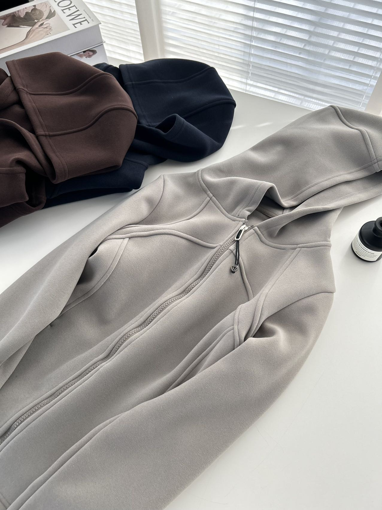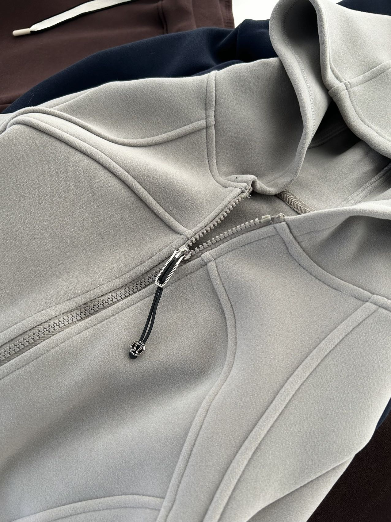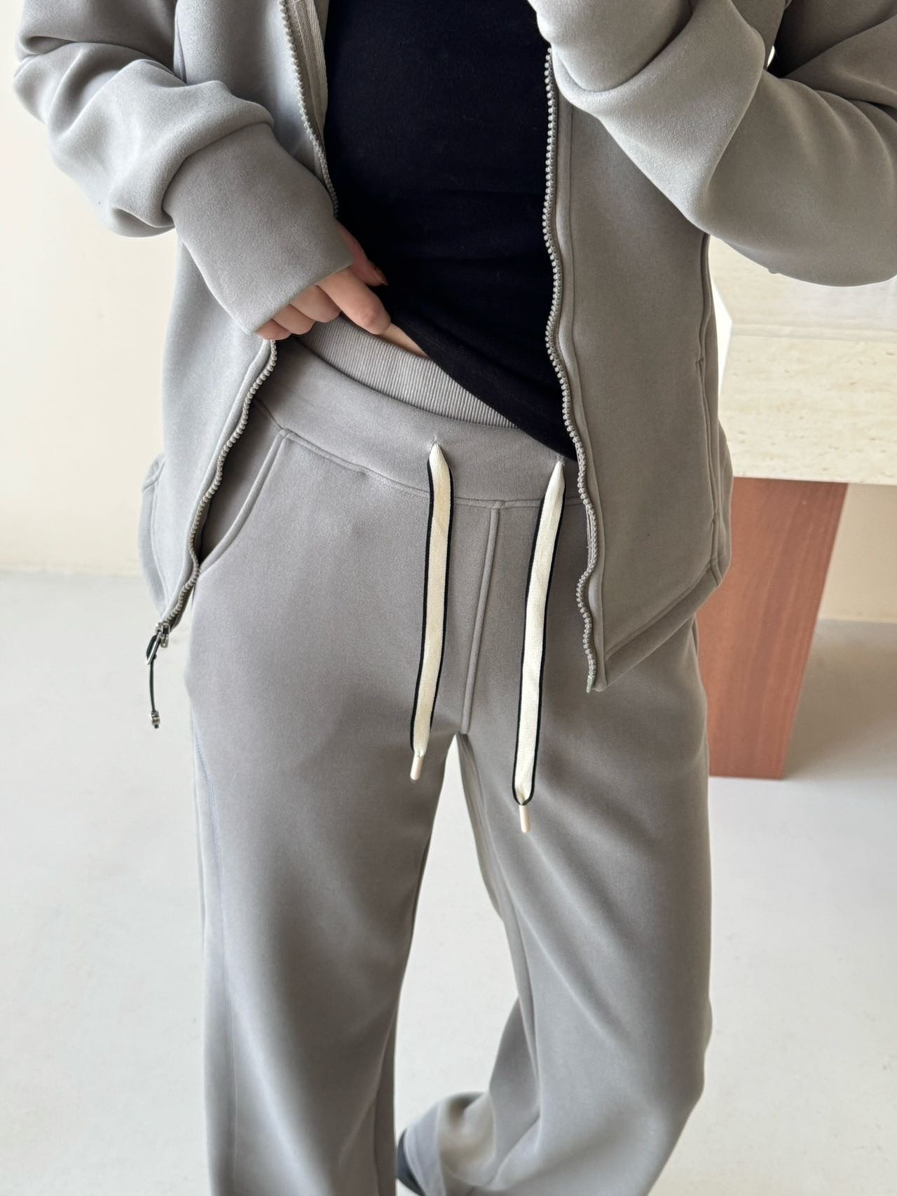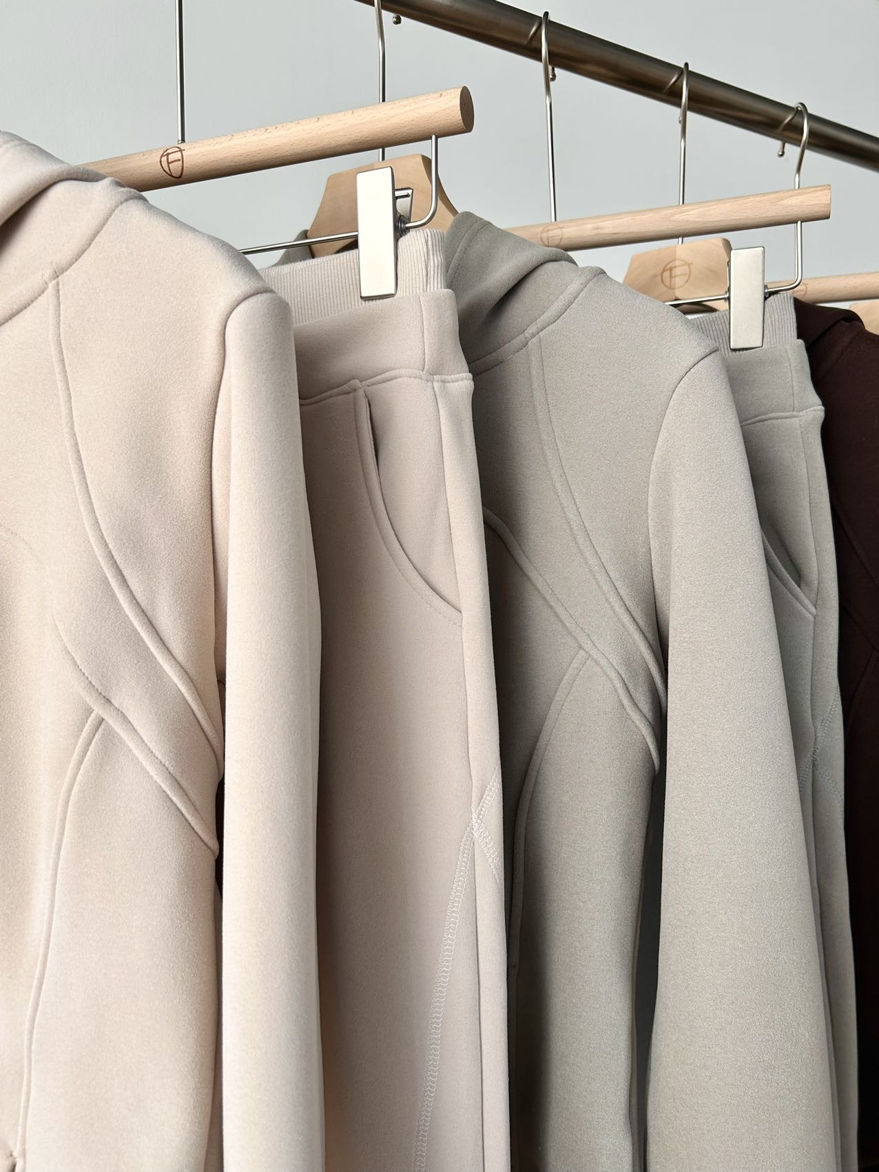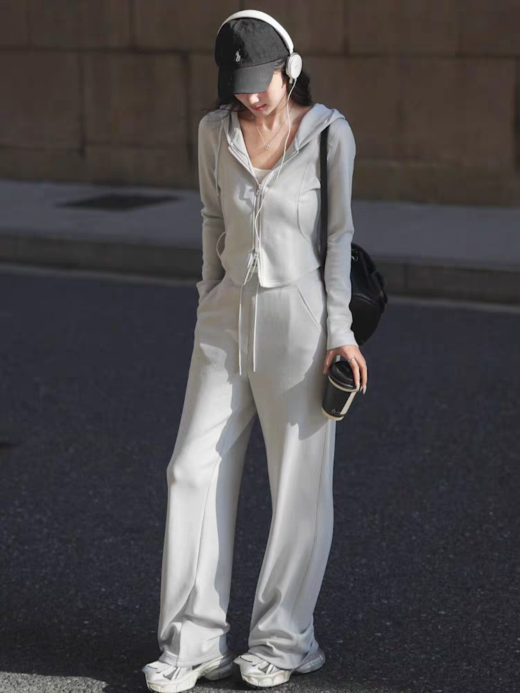 上衣双侧立体鱼骨线,掐腰显瘦显腿长。