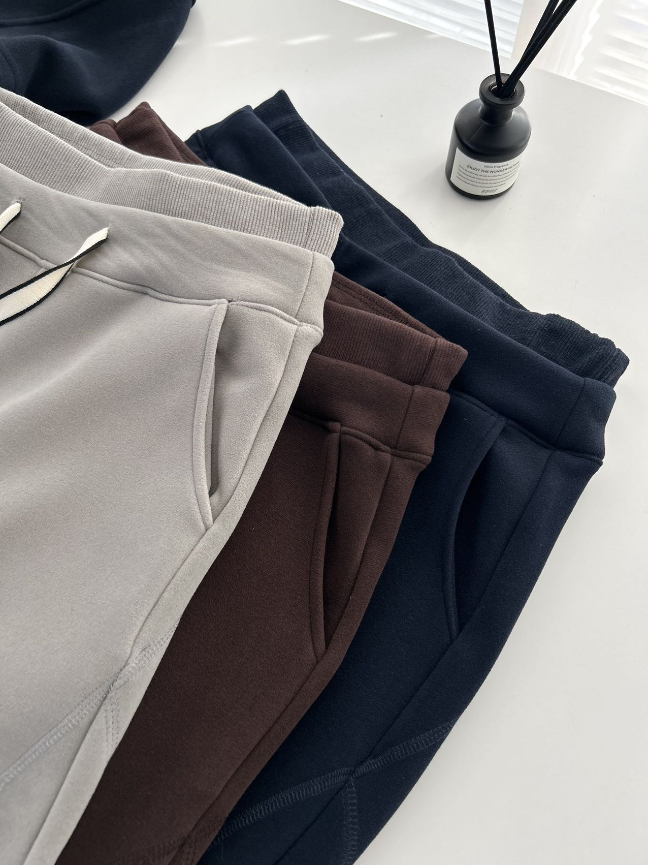 裤子双腰阔腿裤版型,休闲运动皆可。