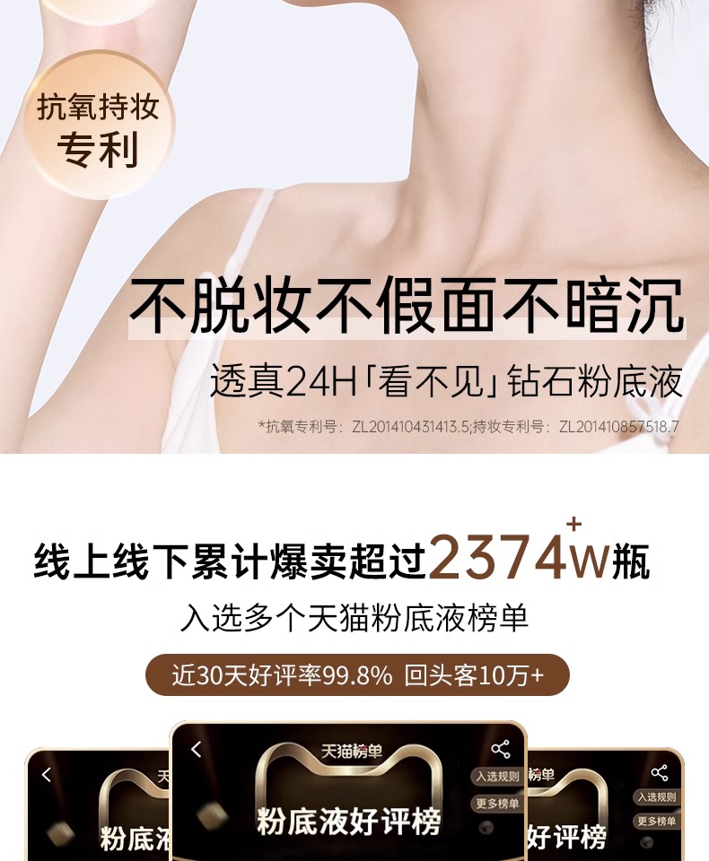 【24H水润清透持妆】持色锁妆粉底液35g#防水粉底液持久遮瑕不脱妆混油皮干皮bb霜女看不见保湿旗舰店官方