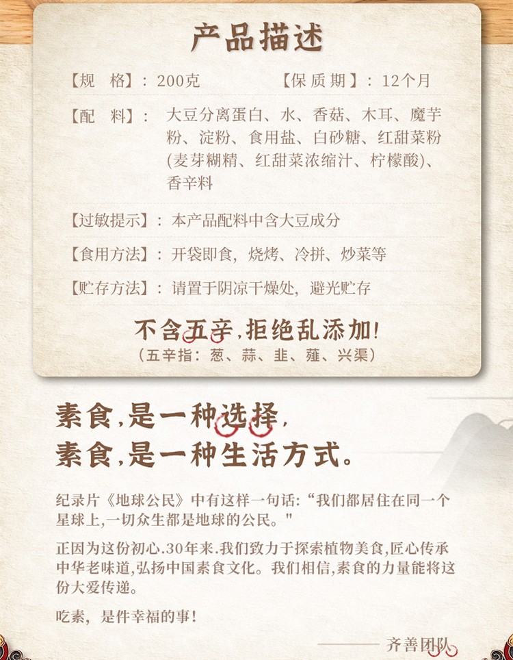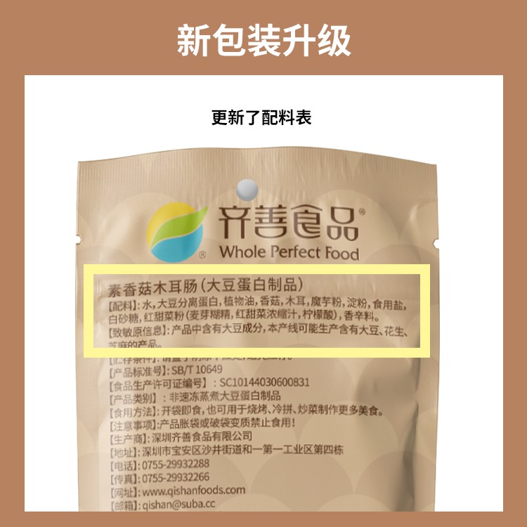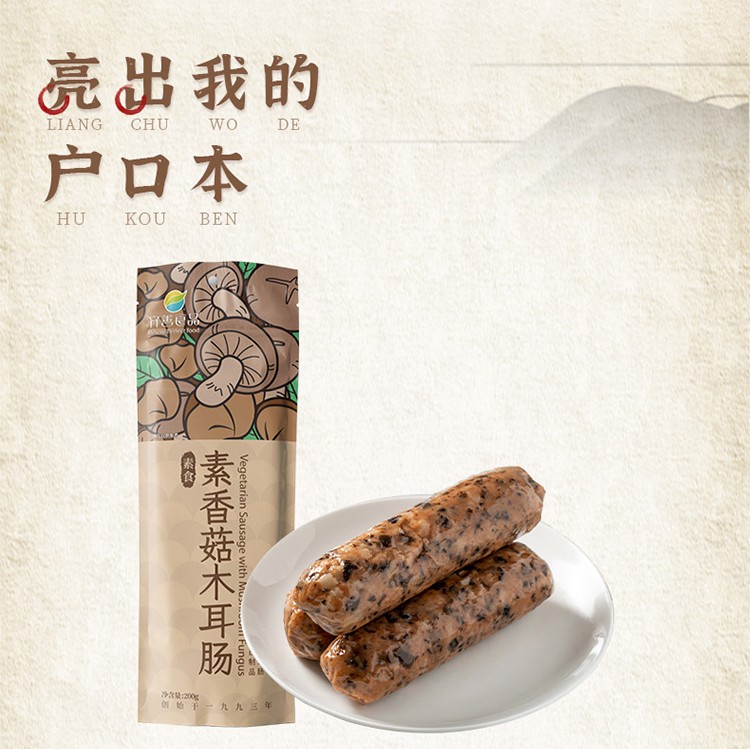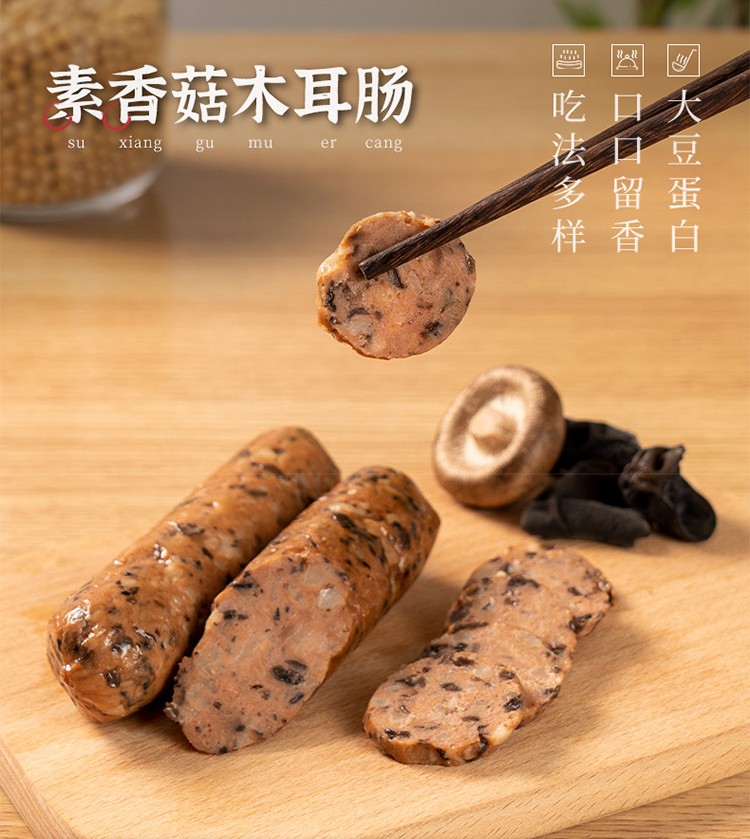 天悦名坊素食【齐善 素香菇木耳肠 200g*1包】素香肠素火腿素肠