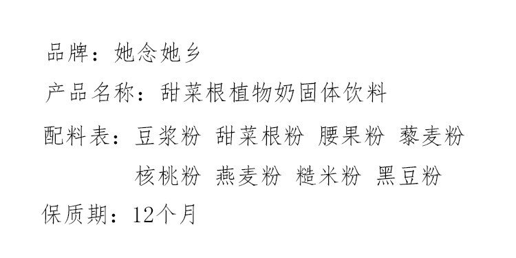 甜菜根植物奶510g 补充蛋白质 天然无添加 她念她乡
