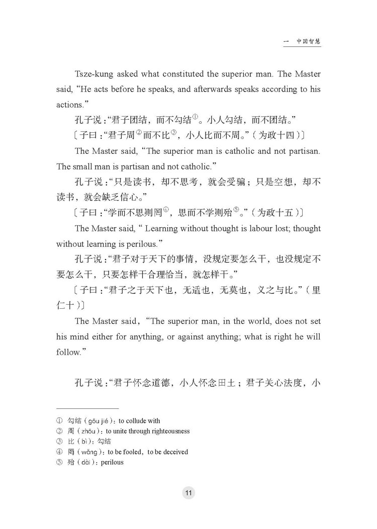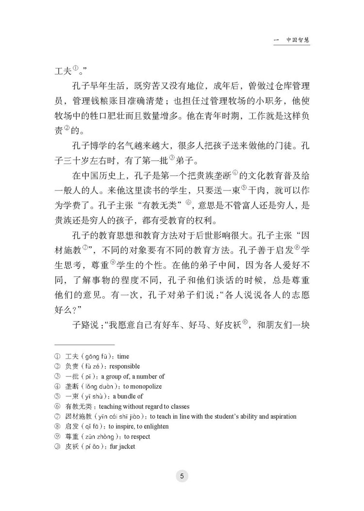 (一)中国智慧:通过这个单元的阅读,认识孔子、老子、墨子、庄子、孟子这些先贤,感悟他们的智慧和人格魅力,初步领略儒家、道家、墨家的思想精粹。
