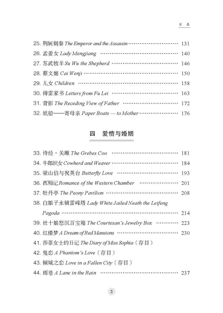 (四)爱情婚姻:本单元以爱情婚姻为主题的作品,包括古代和现代最著名的诗歌、民间传说、小说、经典戏剧故事,展现了传统中国与现代中国的爱情、婚姻观念以及家庭生活的风貌。