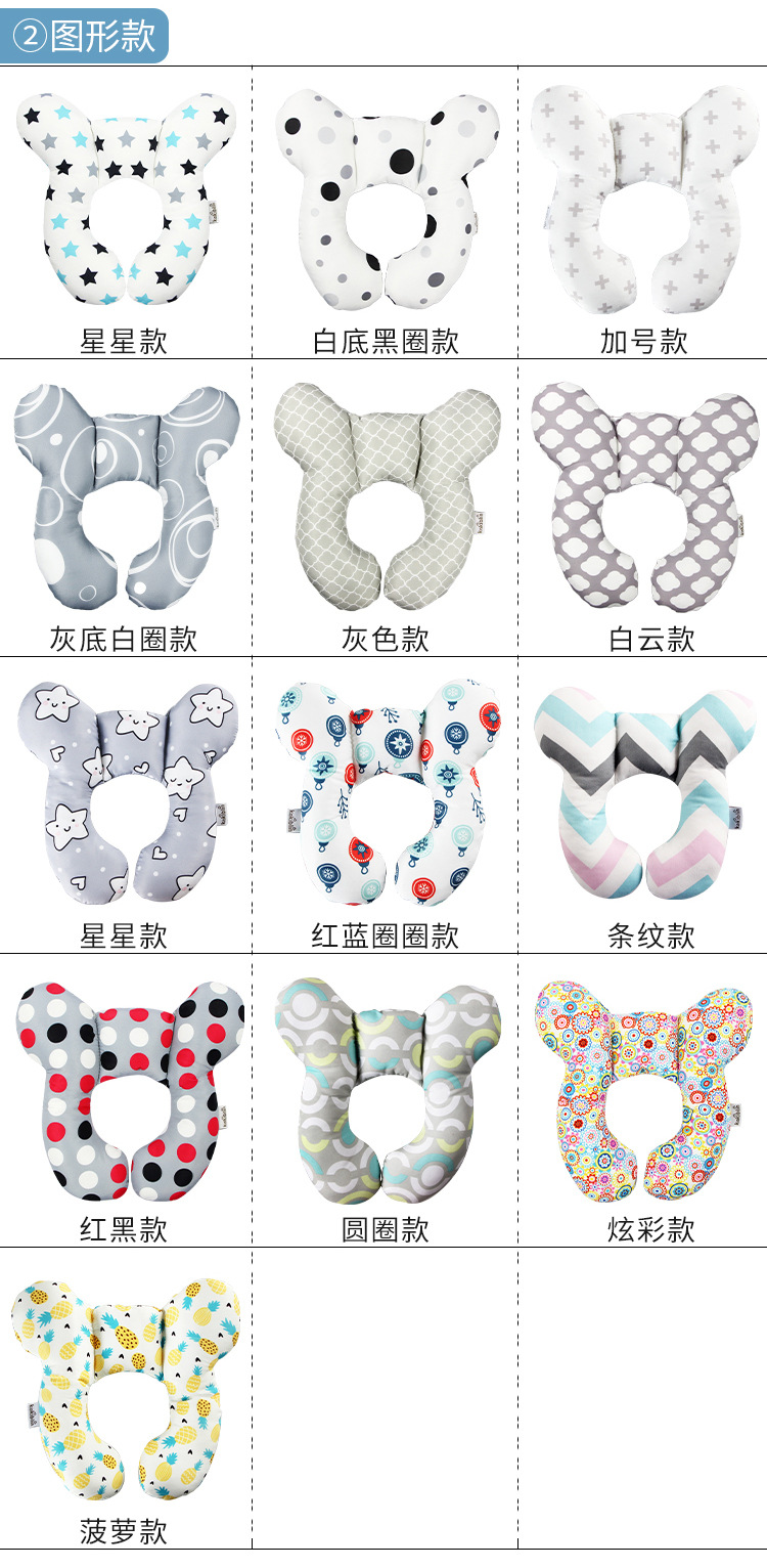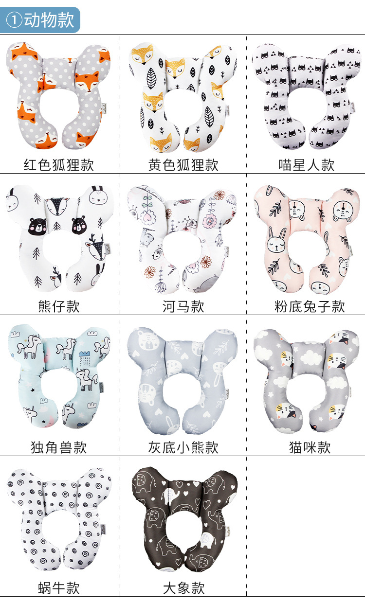 【护头护颈 宝宝出行减震又舒适】新款卡通图案儿童U型枕 外出旅行推车护颈枕婴儿头部定型枕