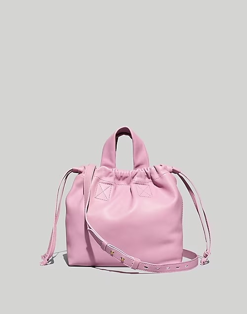 这个系列的包采用无结构的形状、大胆的颜色和超柔软的可持续皮革。这个斜挎包设计有拉绳和磁扣,可以容纳手机、钱包、小袋子等物品。最棒的是,它可以通过顶部手柄和可调节的(可拆卸的)肩带两种方式携带。