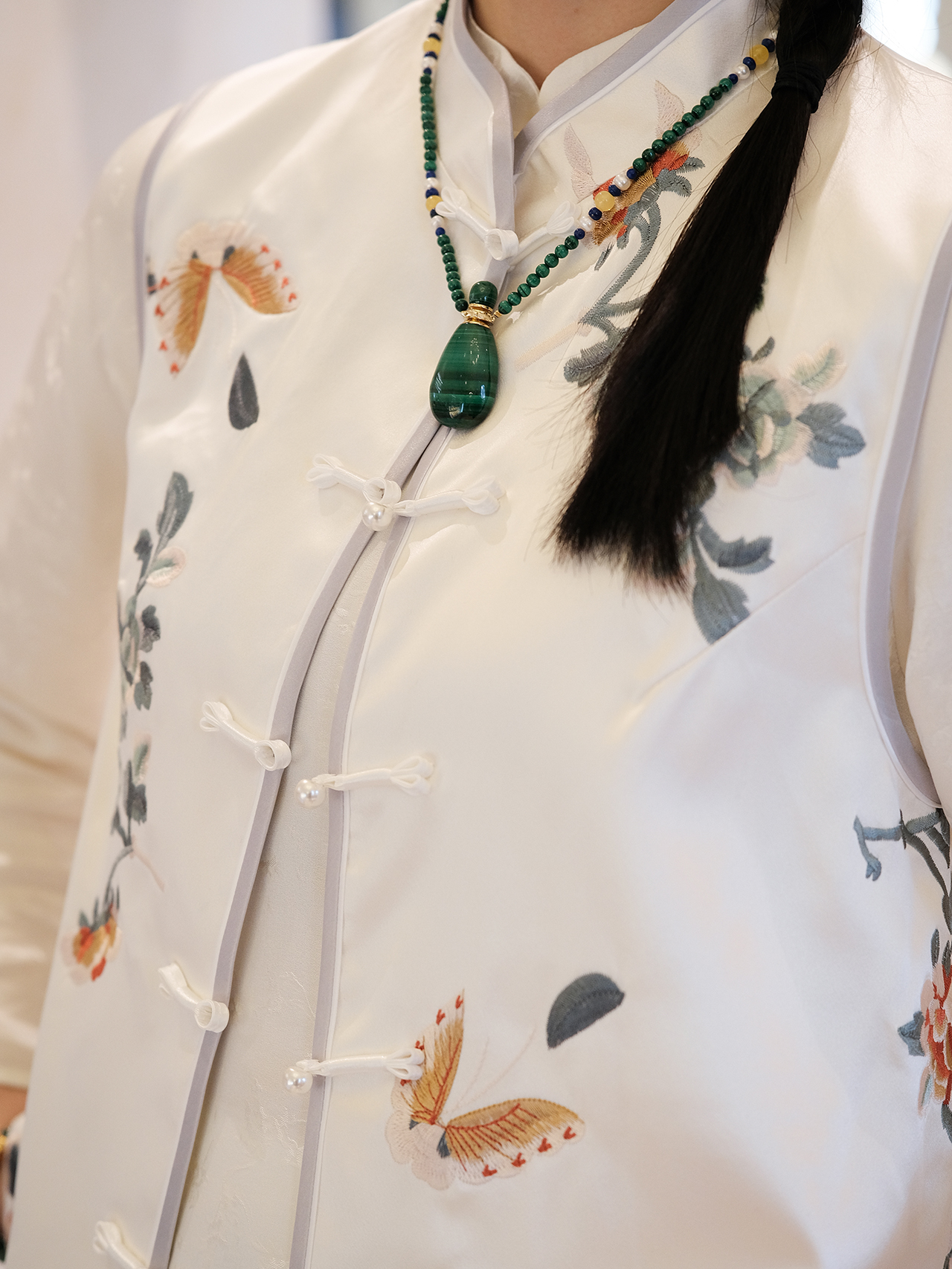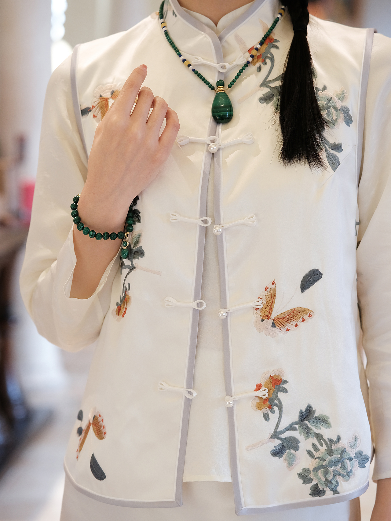 盛唐牡丹|手推绣立领盘扣对襟马甲