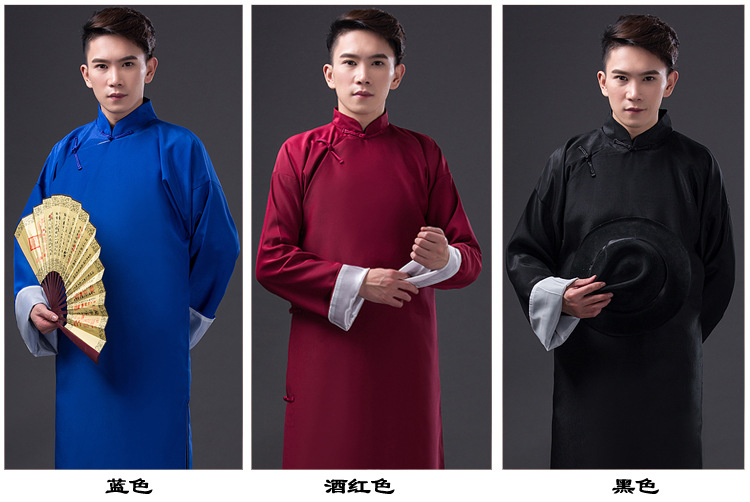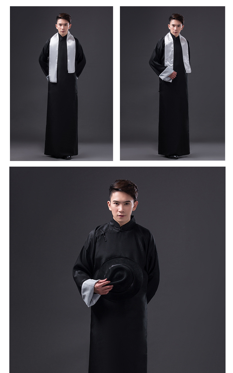 古装长袍男五四民国青年学生装功夫长衫相声大褂教书先生服装