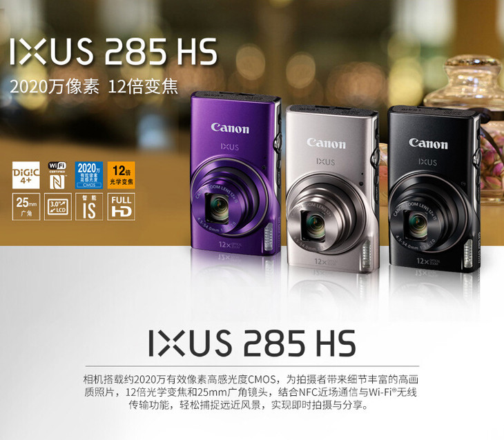 【canon】。Canon/佳能 IXUS 285 HS 高清家用数码卡片相机 旅游防抖wifi相机