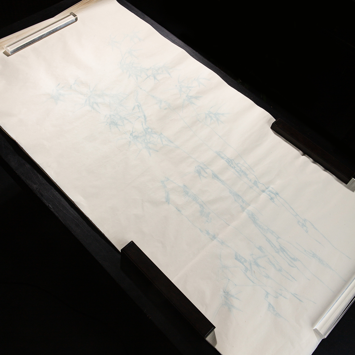 60-70年代上海朵云轩精制木版水印四尺全长大画笺(竹石,色标:花青)