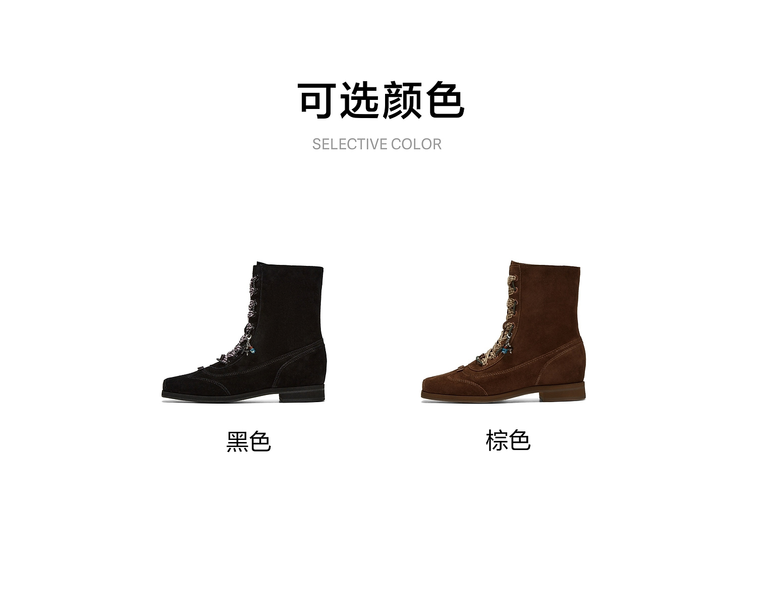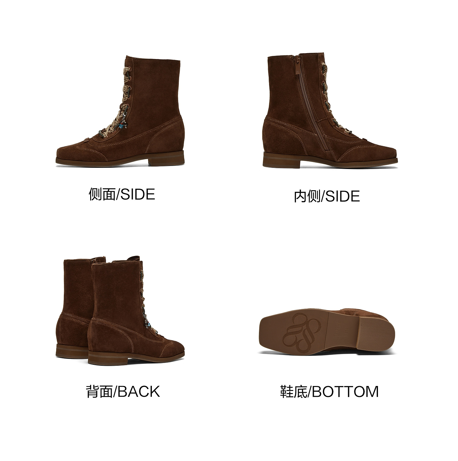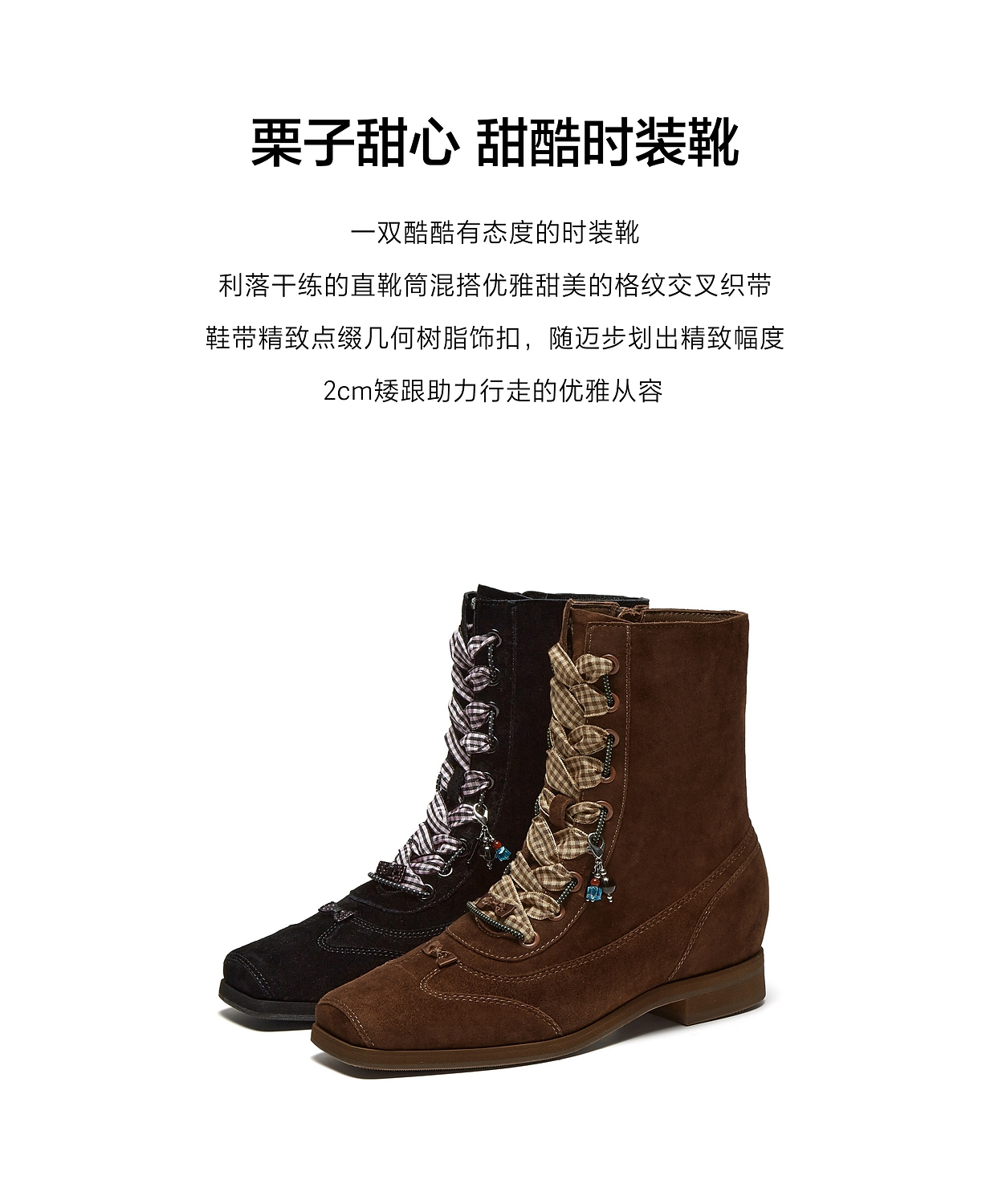 BF楼真美诗栗子甜心2025新冬款羊皮甜美织带甜酷时装西部短靴女吊牌价1998折后价1598