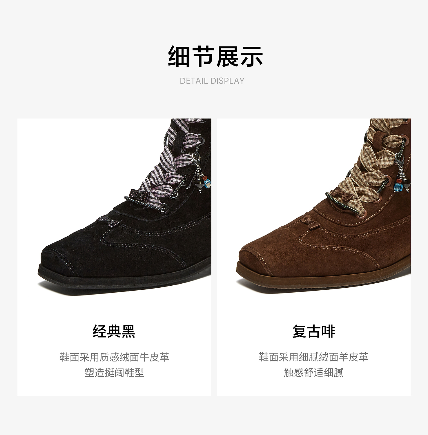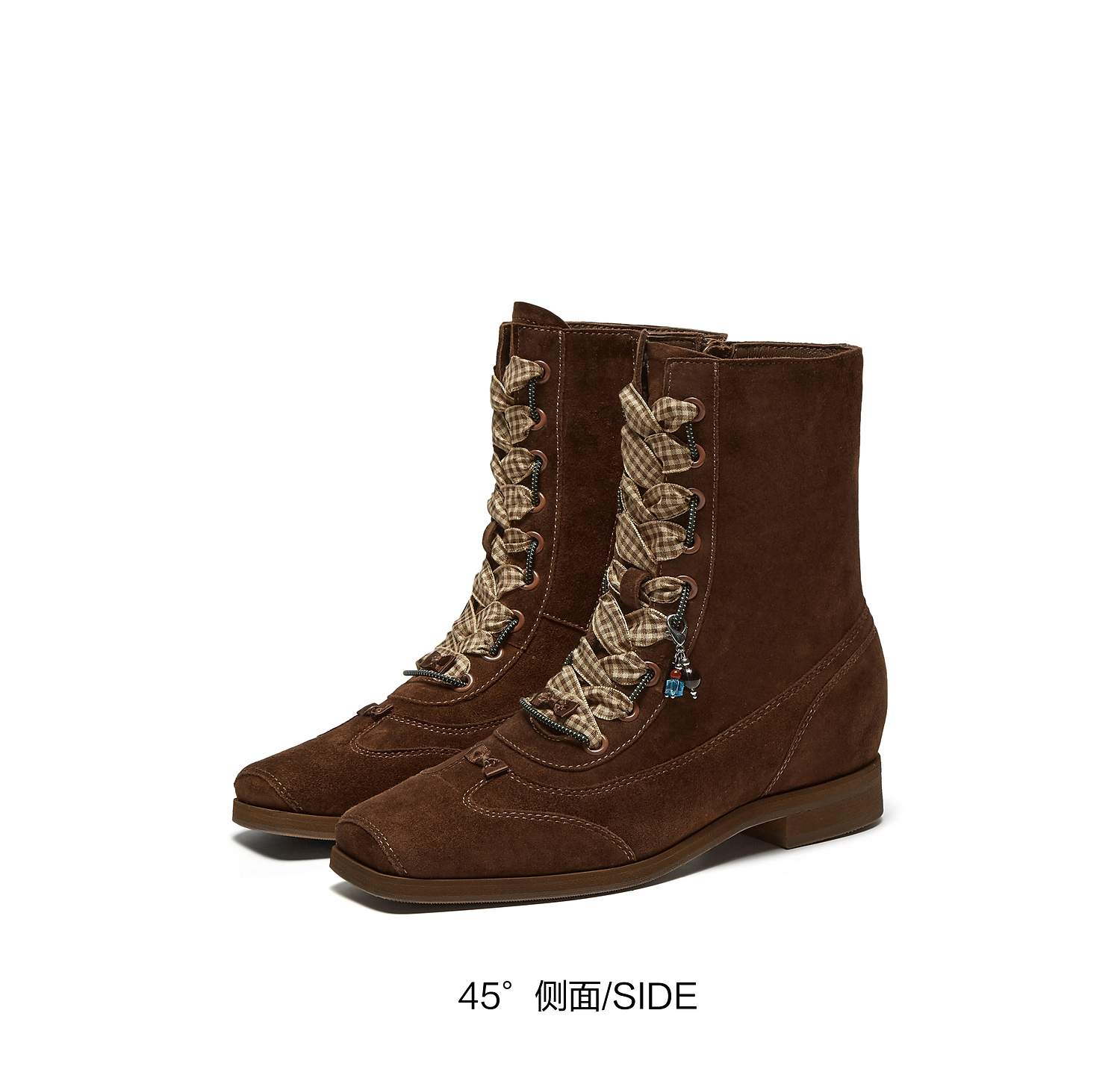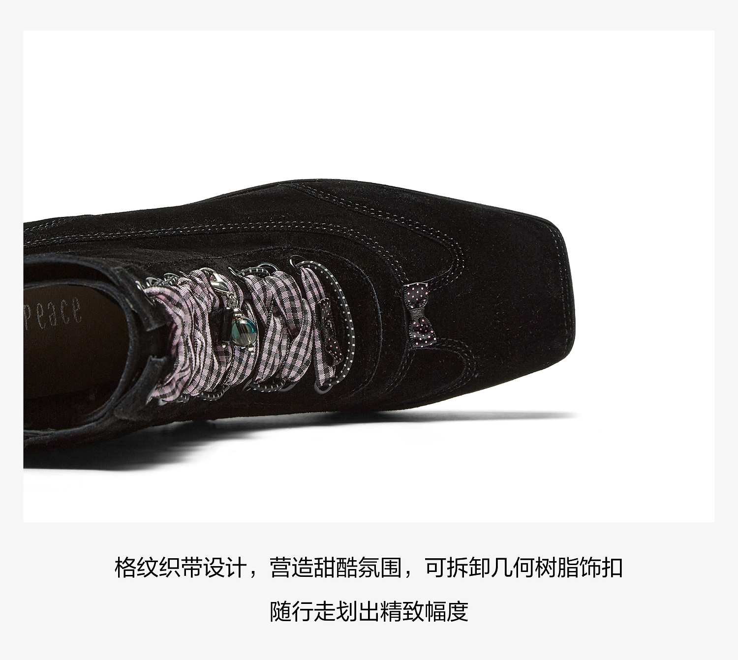 BF楼真美诗栗子甜心2025新冬款羊皮甜美织带甜酷时装西部短靴女吊牌价1998折后价1598