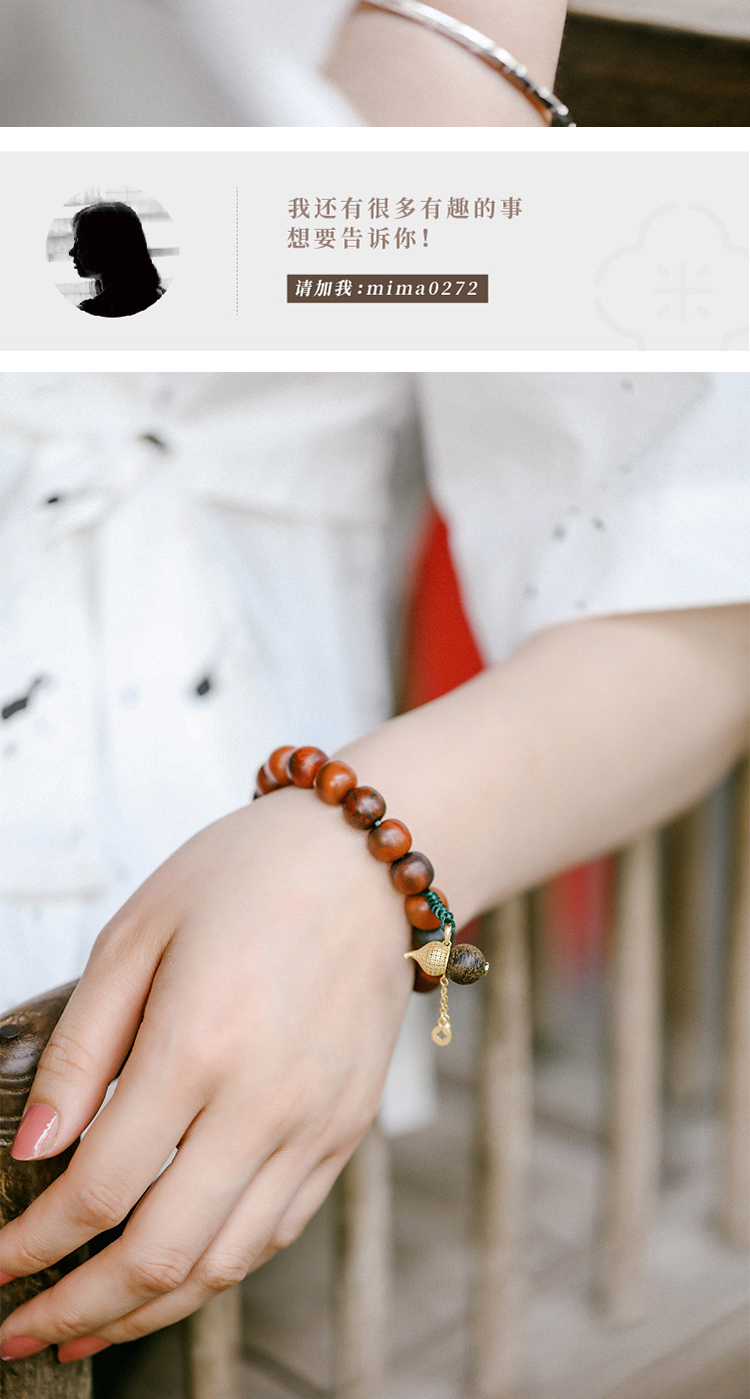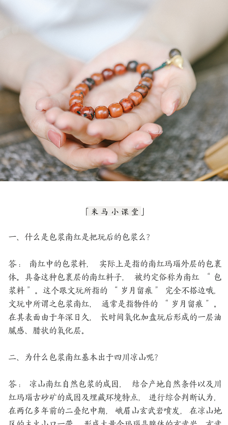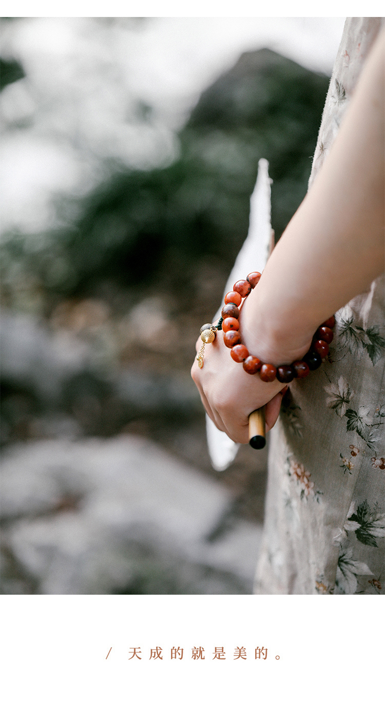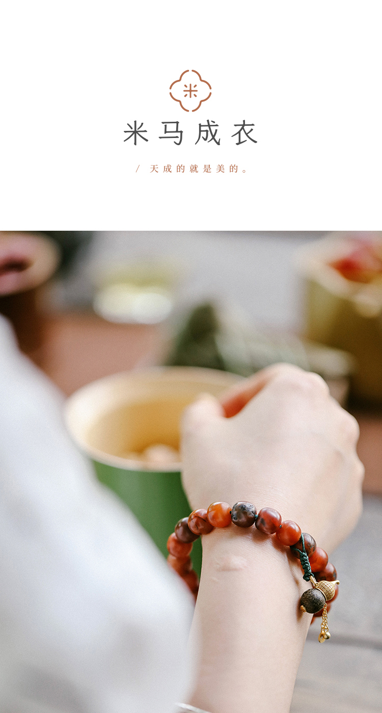 米马生活 四川九口天然带皮南红手钏/压襟 配沉香925银镀金“福禄”