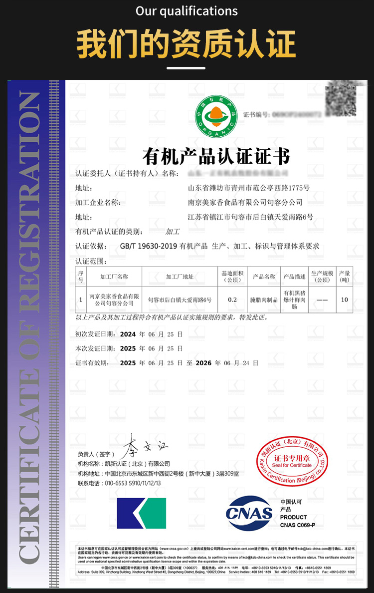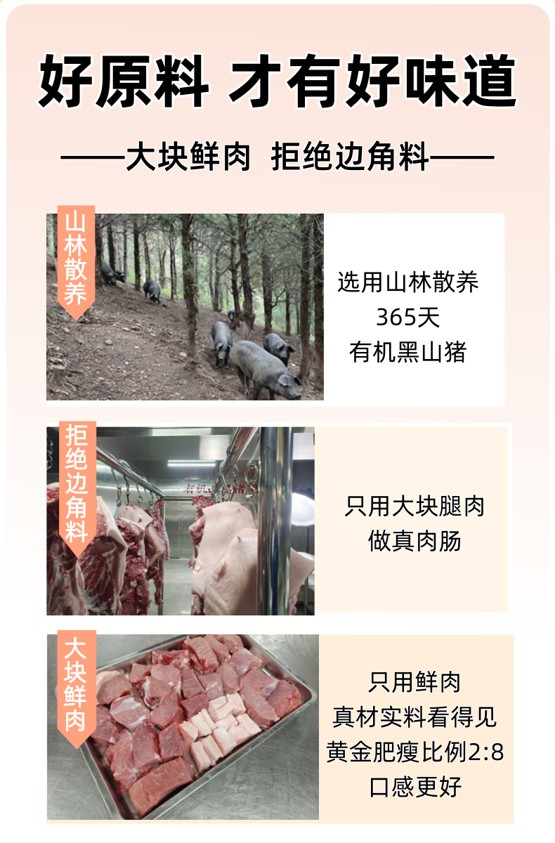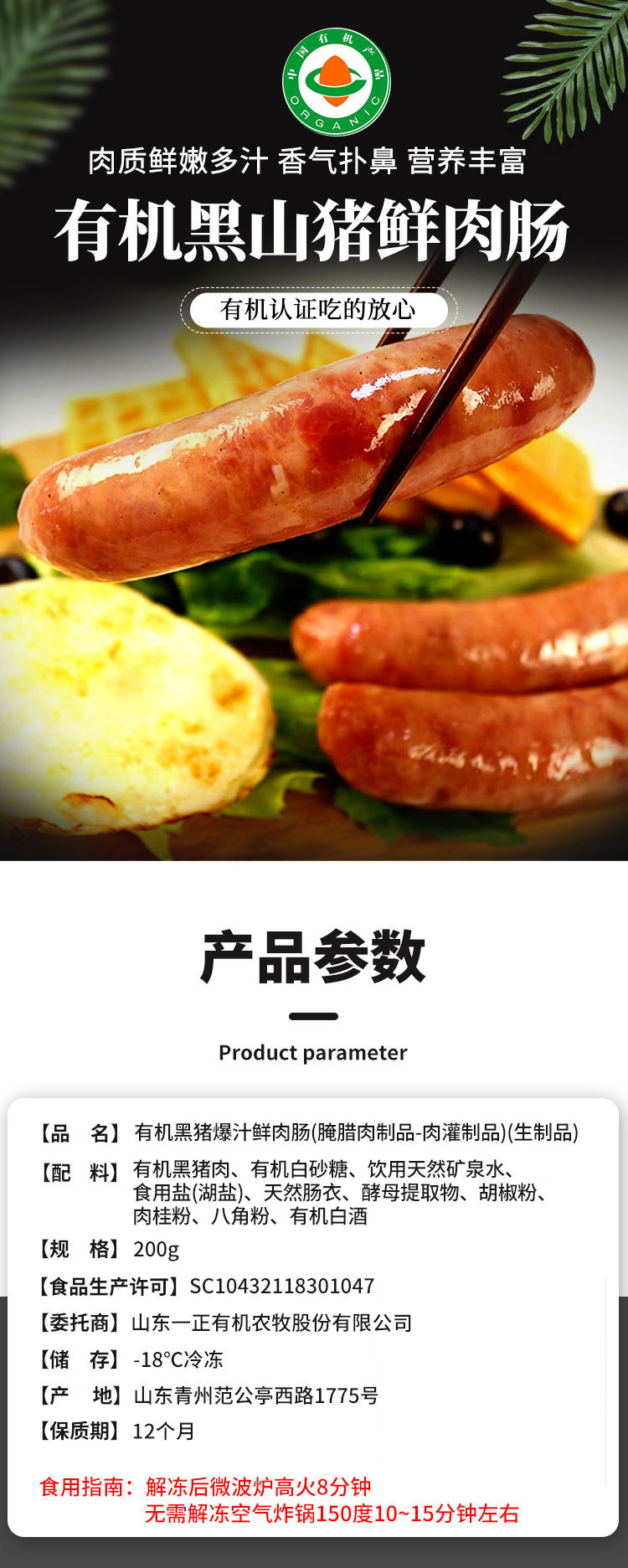 【厂商直发】有机黑猪爆汁鲜肉肠200g*4袋原味/胡椒味口感鲜嫩包邮