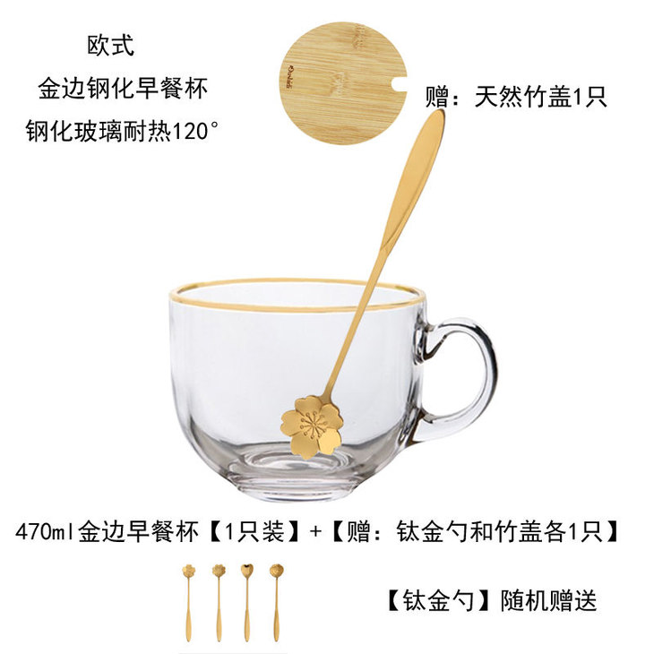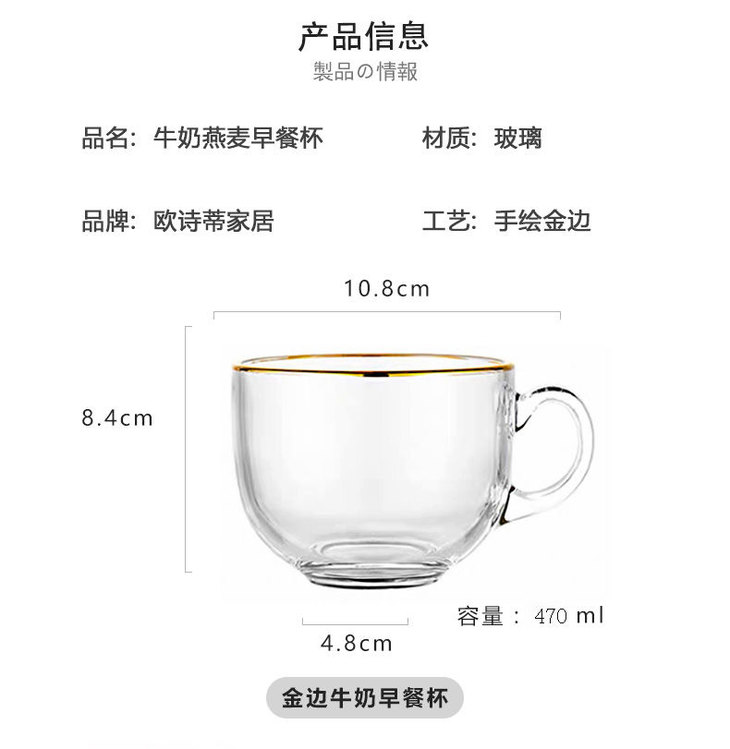 大容量金边网红燕麦杯 牛奶玻璃家用耐热早餐杯