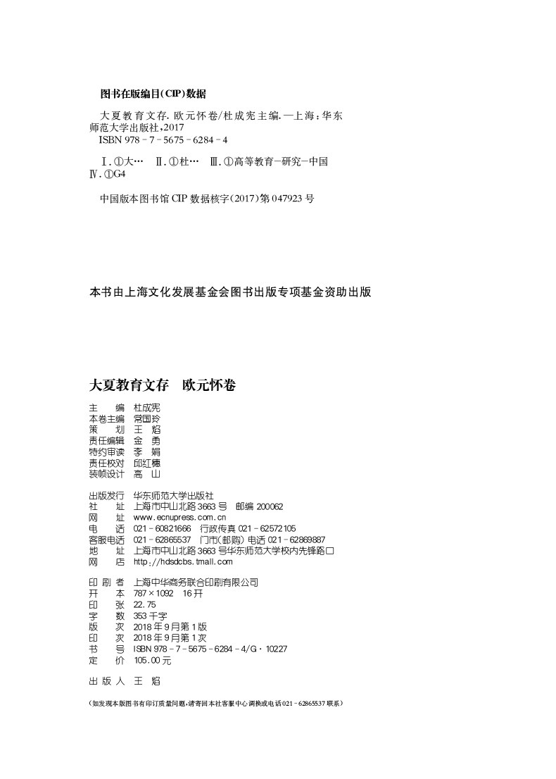 大夏教育文存 欧元怀卷 大学教育 大夏大学办学历史