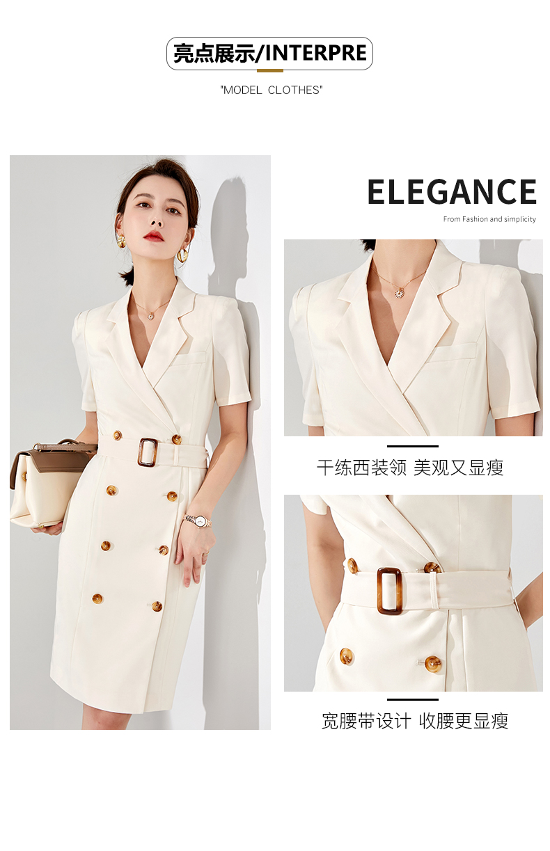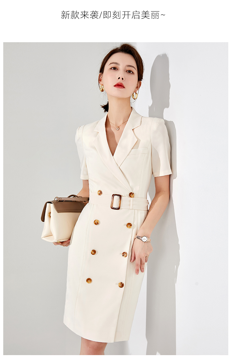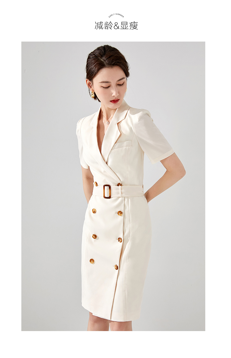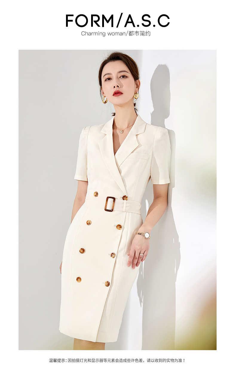 艾尚臣2022年夏新款双排扣职业西装连衣裙女法式收腰薄款女装裙子