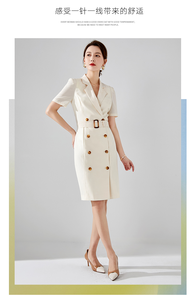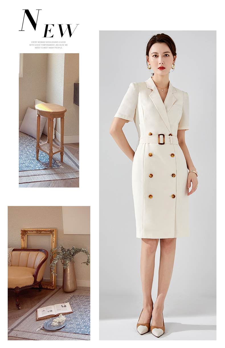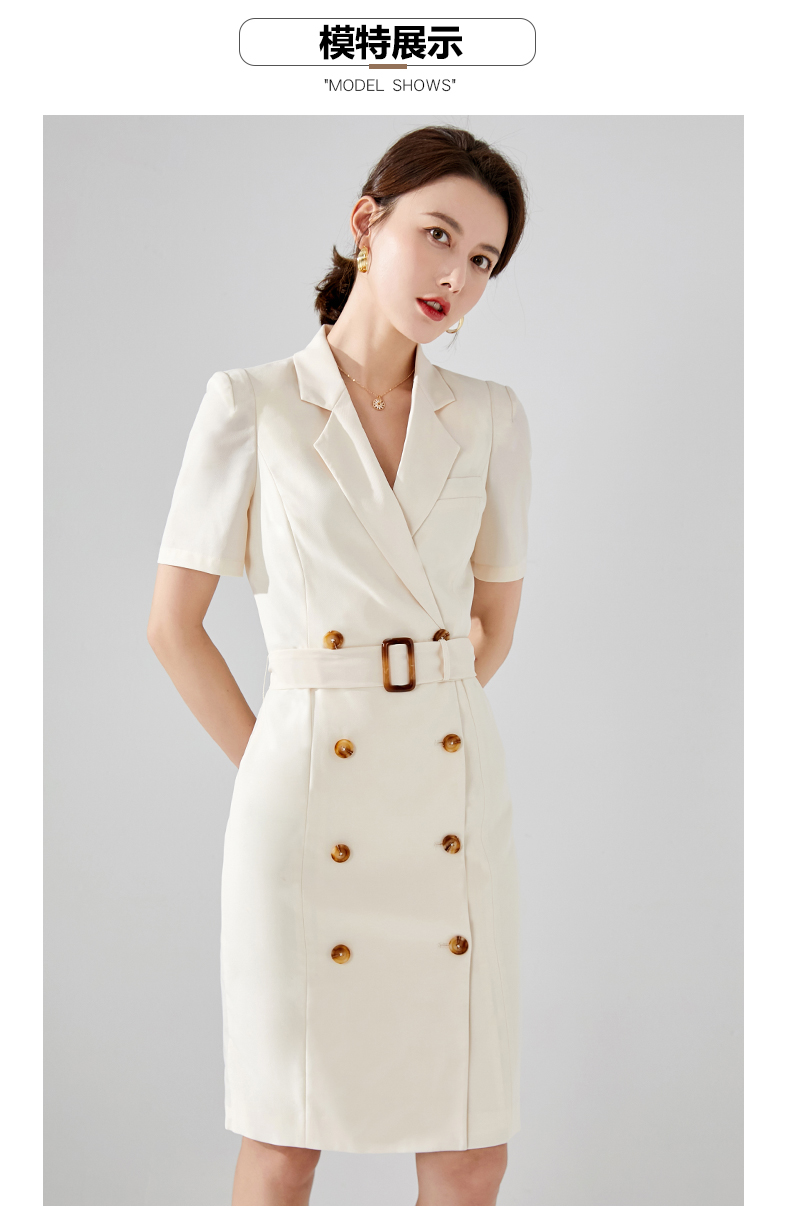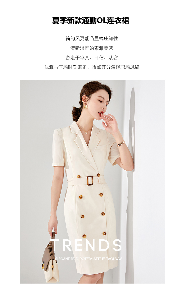 艾尚臣2022年夏新款双排扣职业西装连衣裙女法式收腰薄款女装裙子