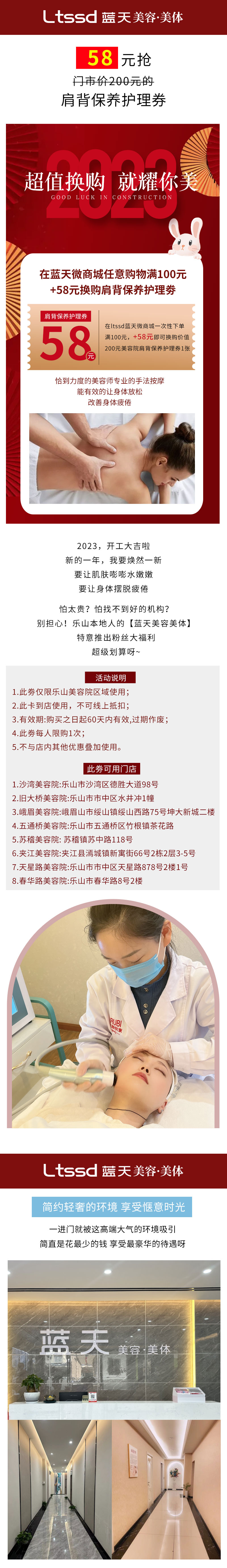 蓝天微商城购物满100元即可+58元换购美容院肩背保养护理券【仅限在蓝天美容院使用】【BM230216501286664】