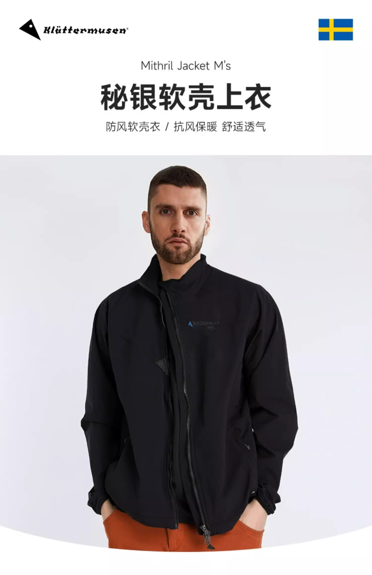 KLATTERMUSEN/攀山鼠新款秘银软壳休闲夹克防风耐磨立领10630M
