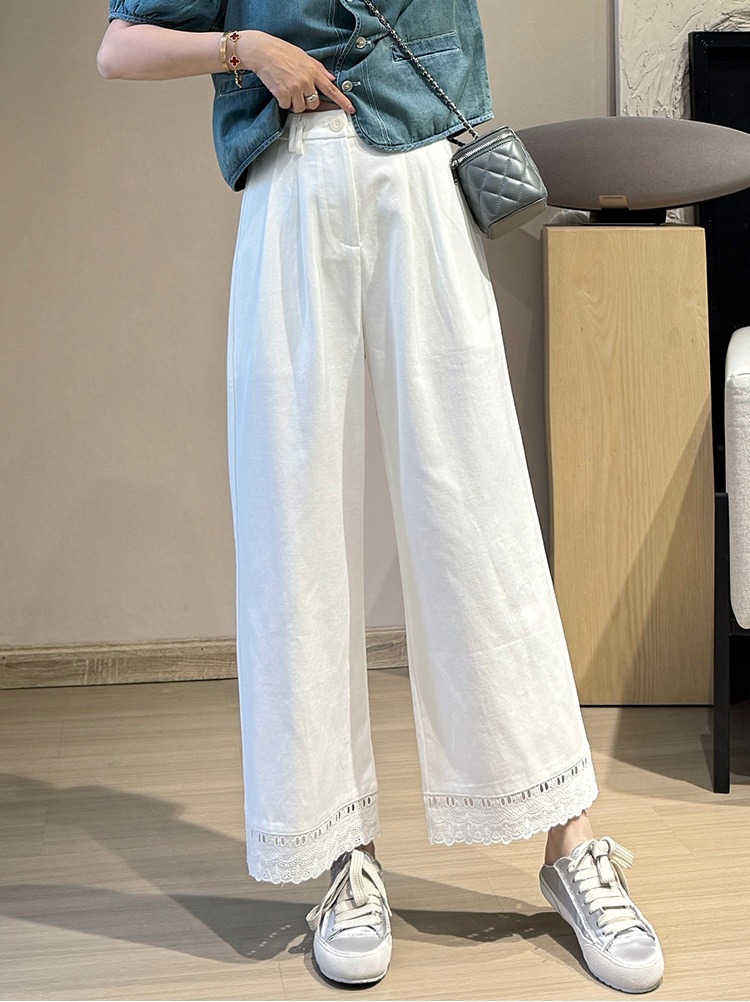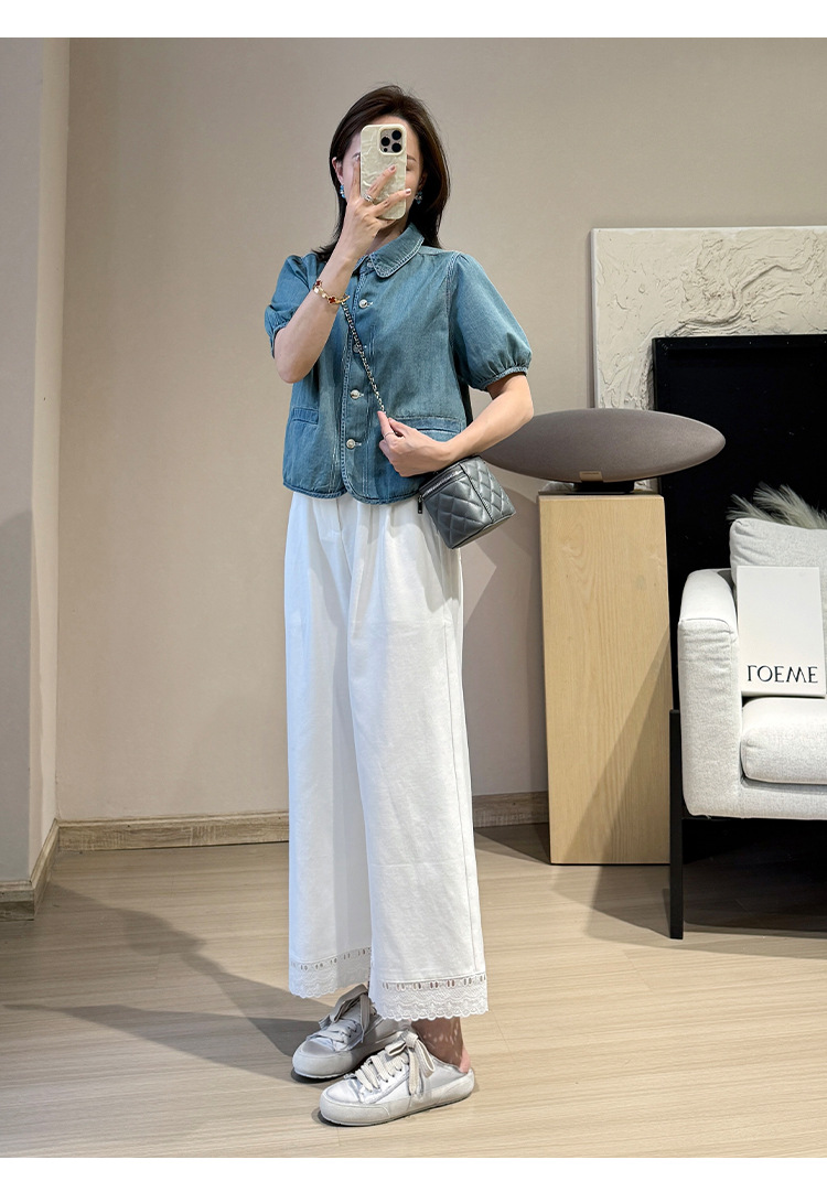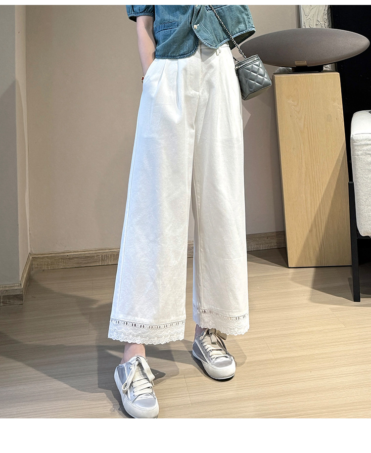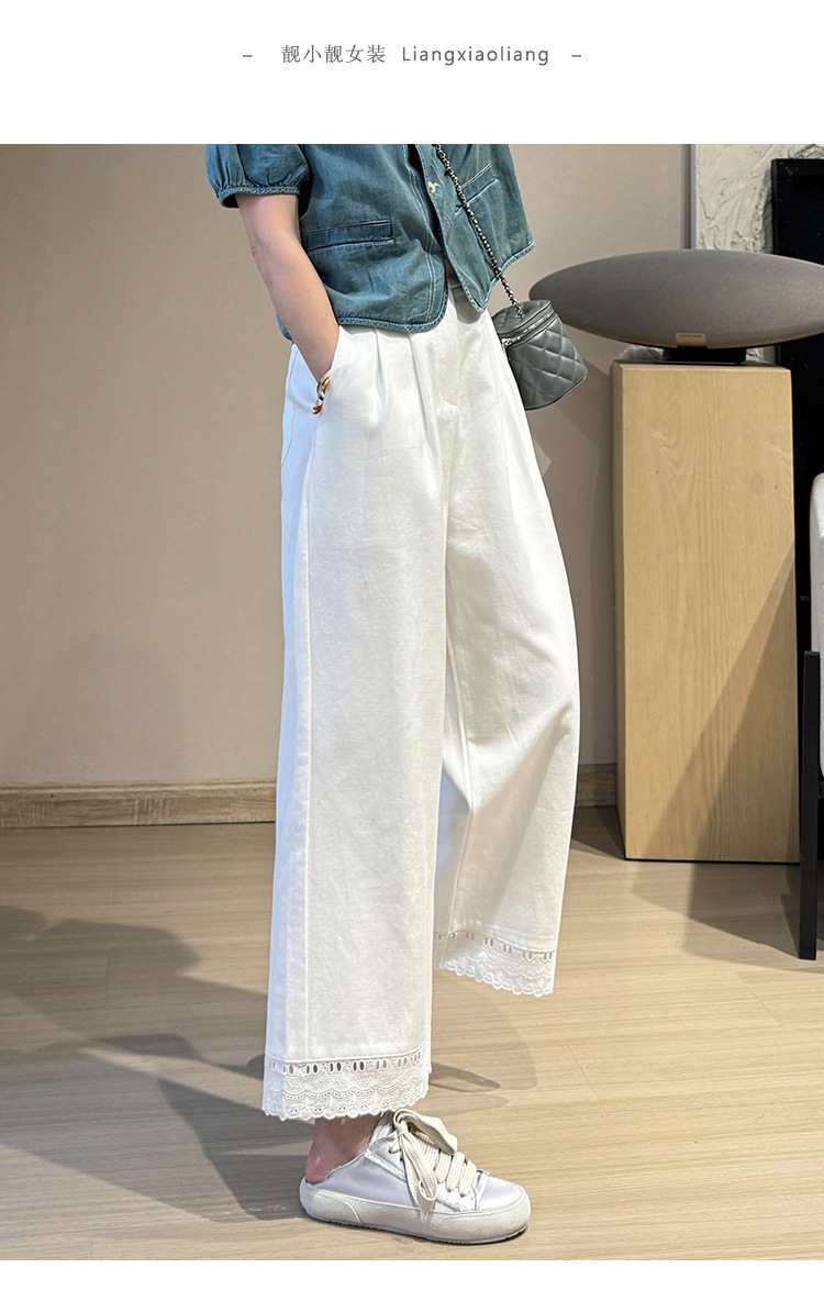裤脚流行元素蕾丝花边点缀 款式新颖 韩系味道 轻松穿搭