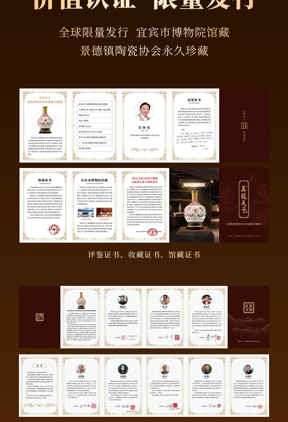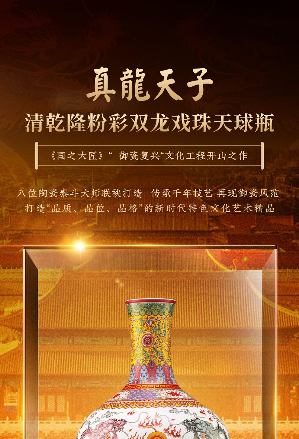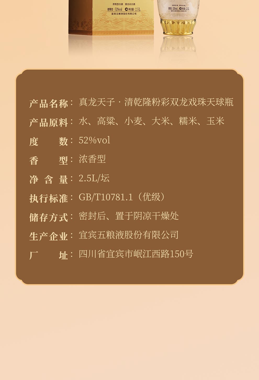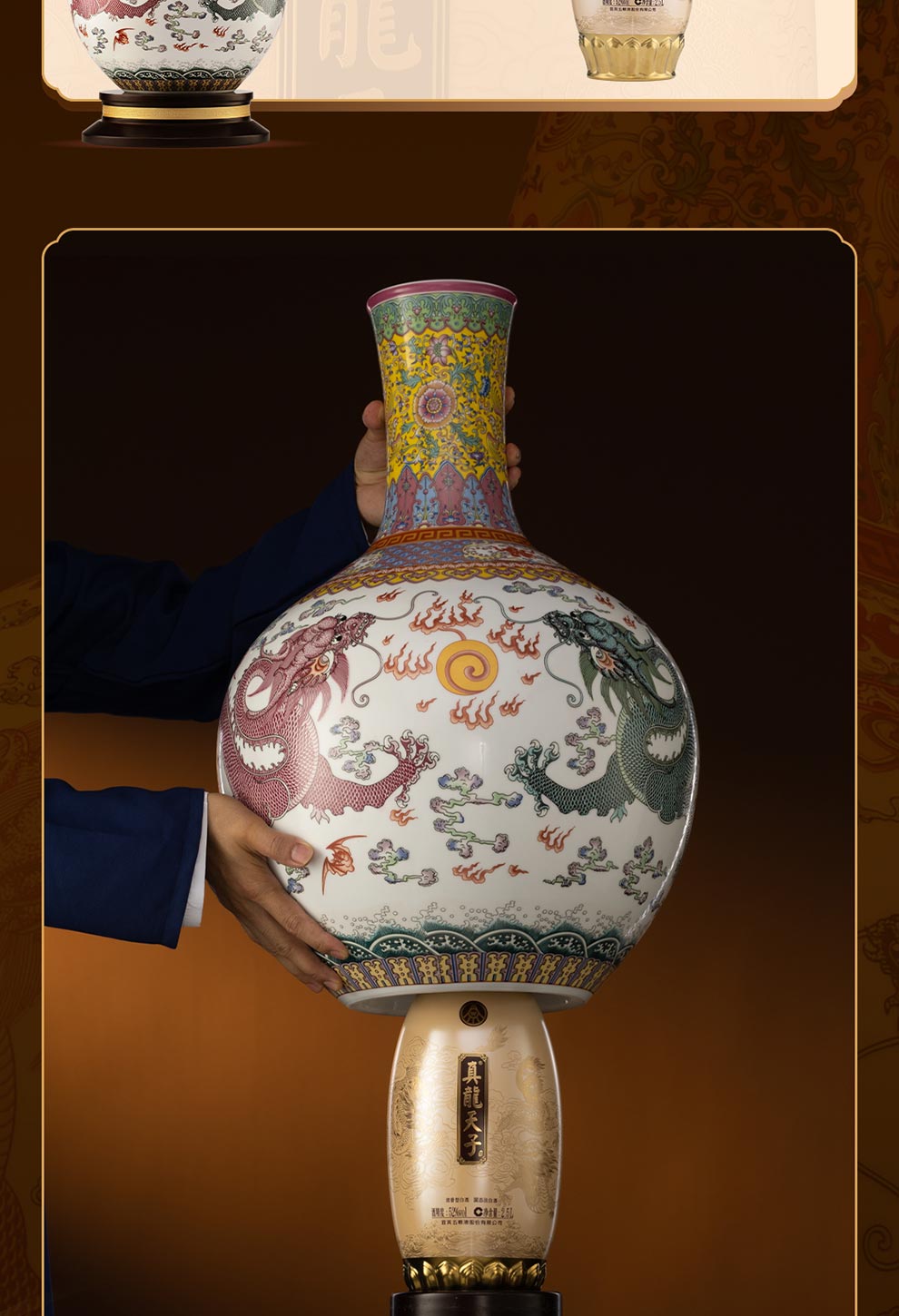 真龙天子清乾隆粉彩双龙戏珠天球瓶52度浓香型白酒2.5L礼盒装高端白酒收藏酒