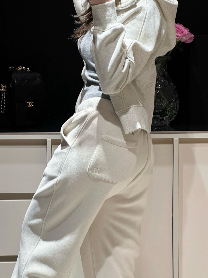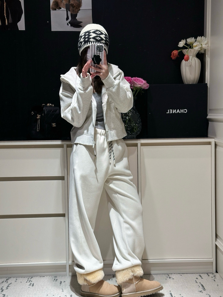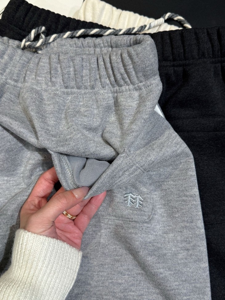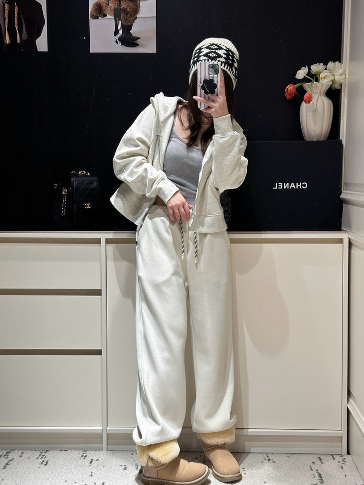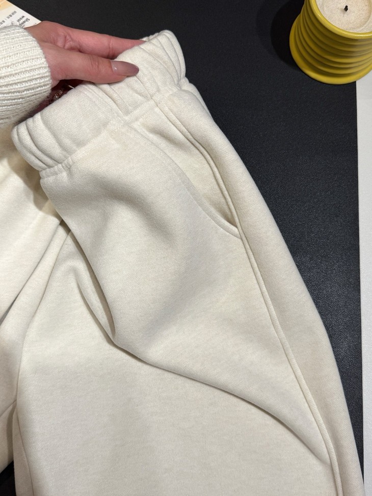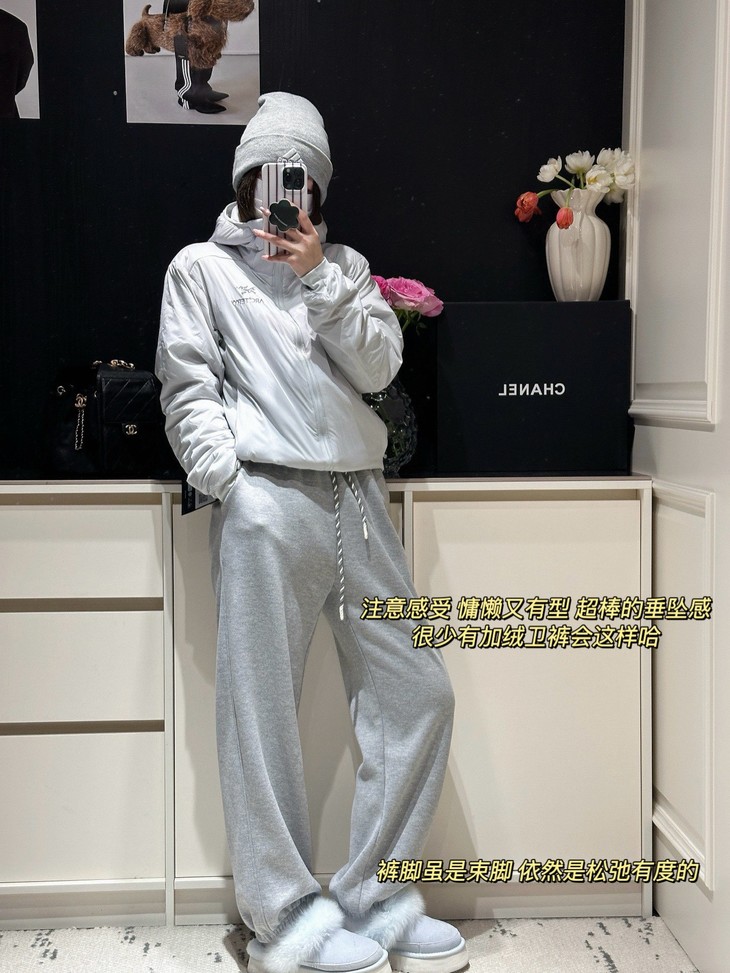 上身还有种又奶又拽的独特气质;而且是加绒的 但是完全不会臃肿;臀部口袋做了刺绣设计 比普通卫裤精致N倍!!