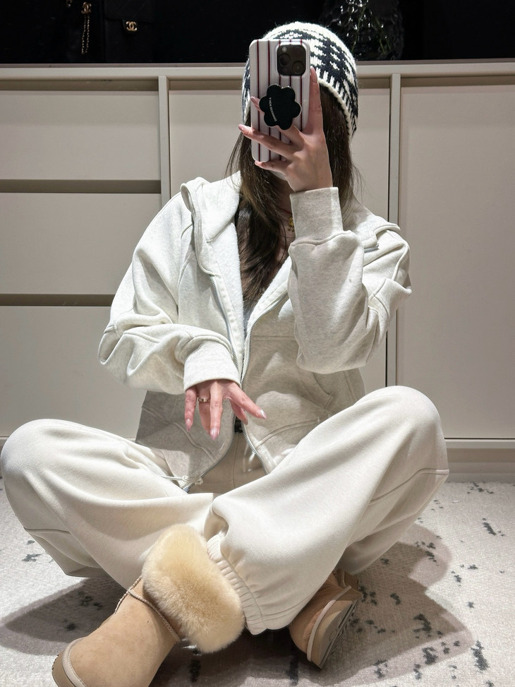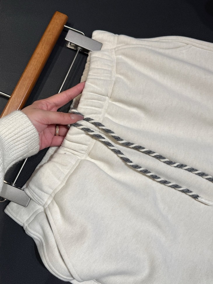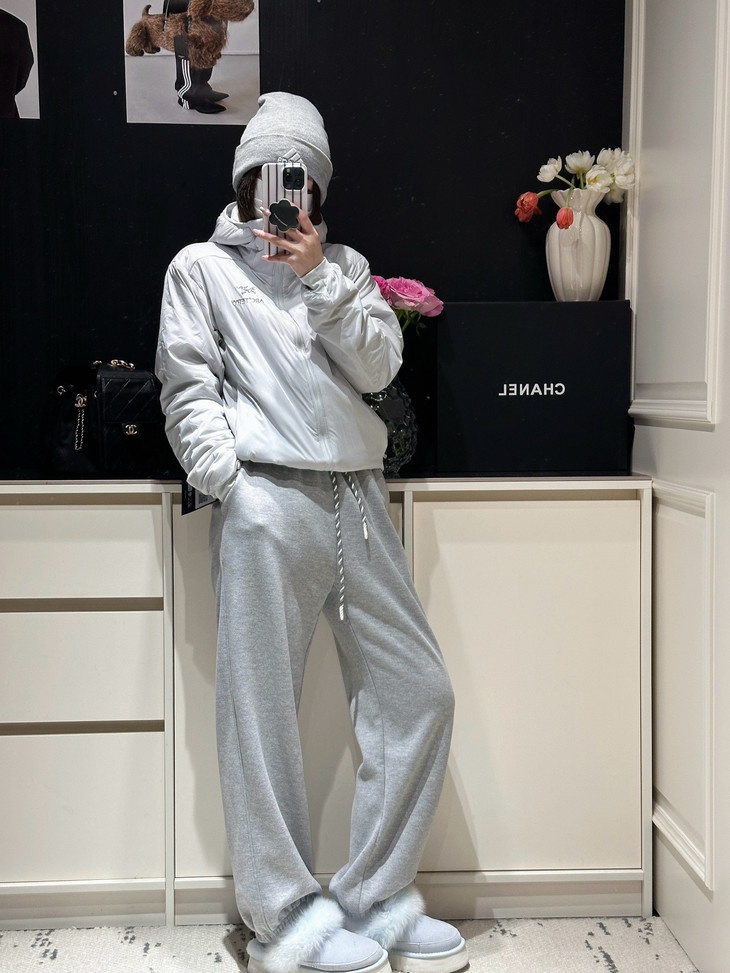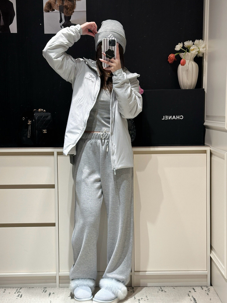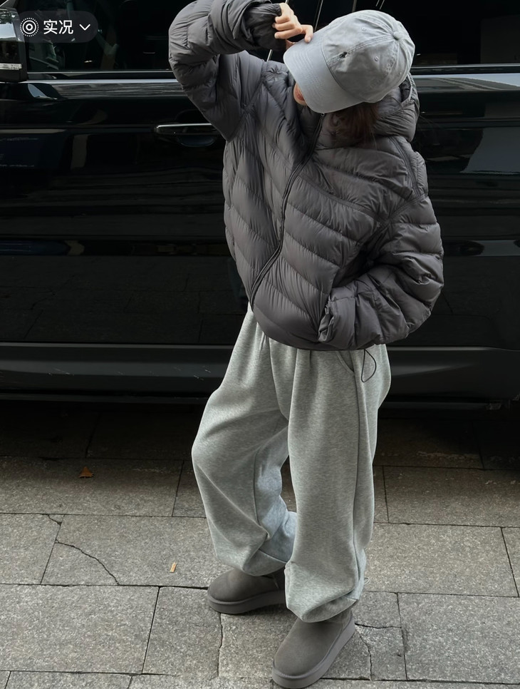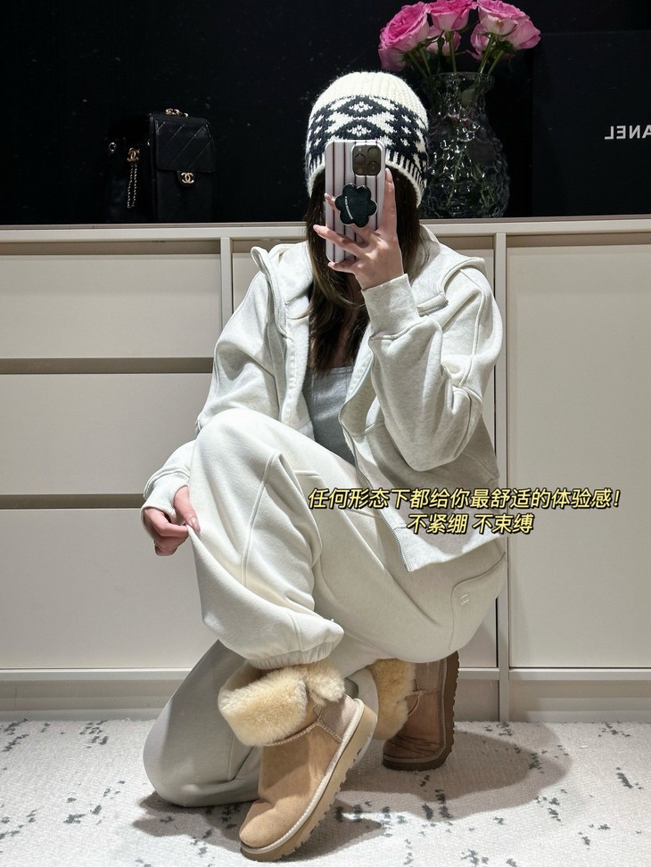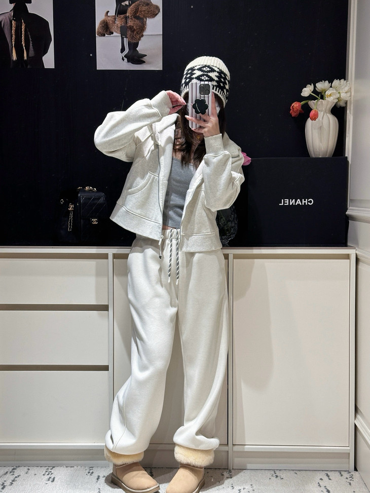 上身还有种又奶又拽的独特气质;而且是加绒的 但是完全不会臃肿;臀部口袋做了刺绣设计 比普通卫裤精致N倍!!