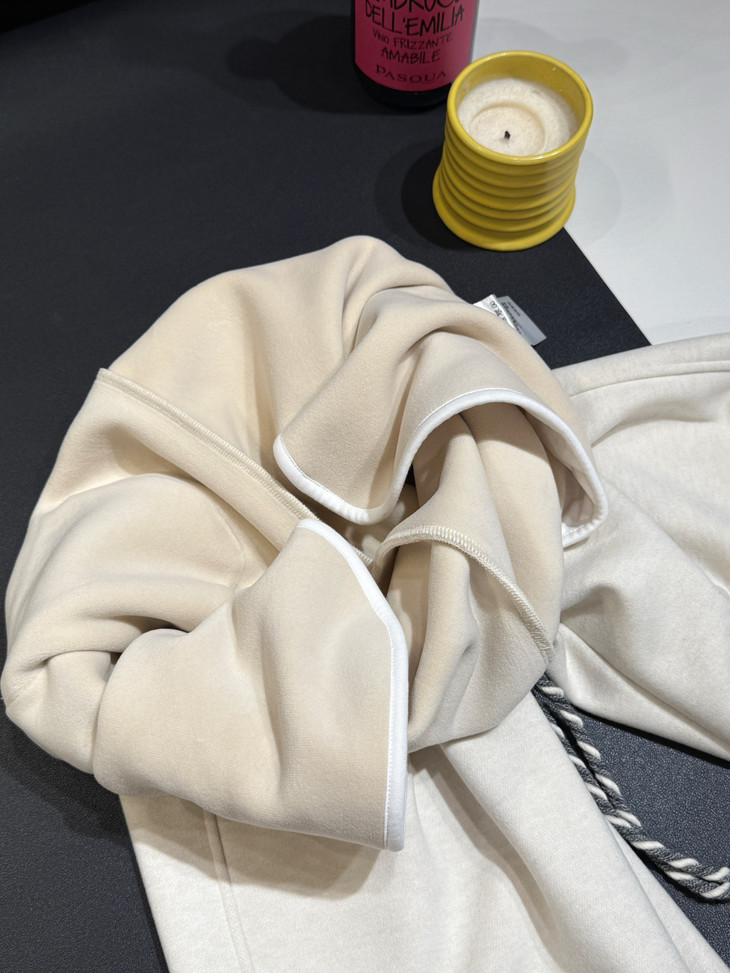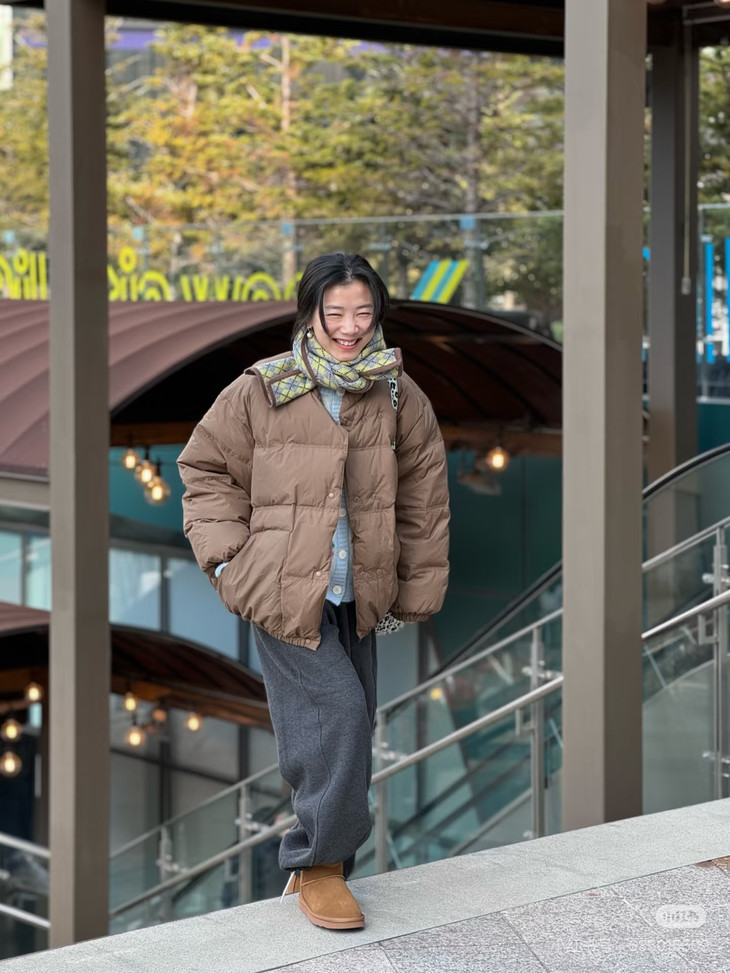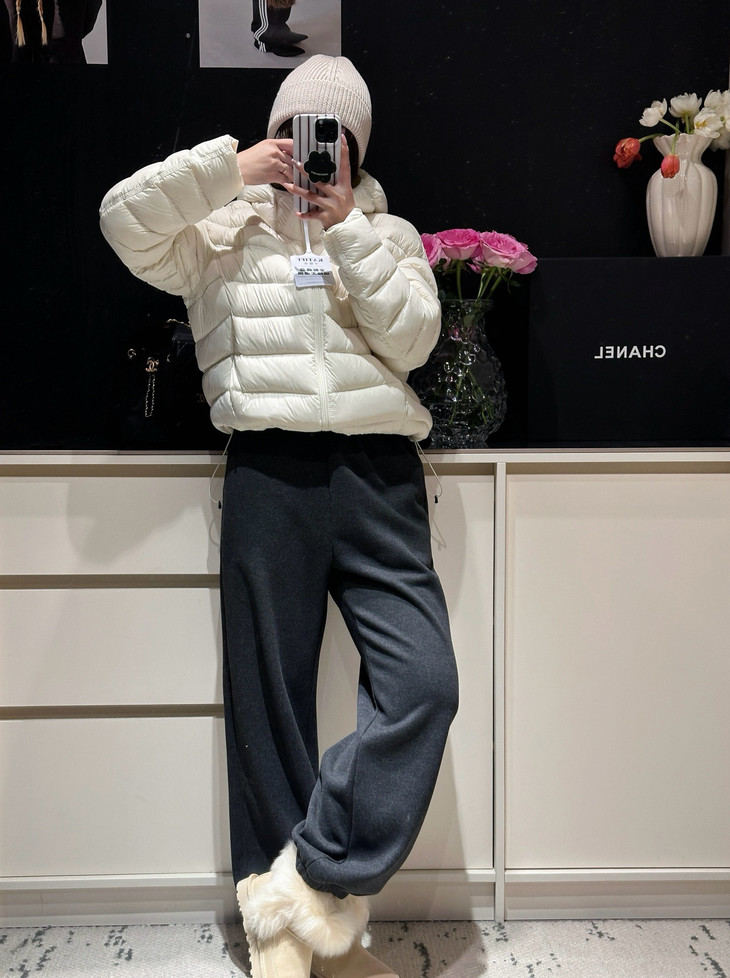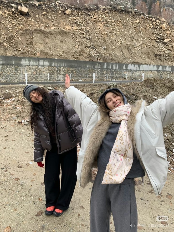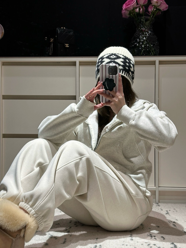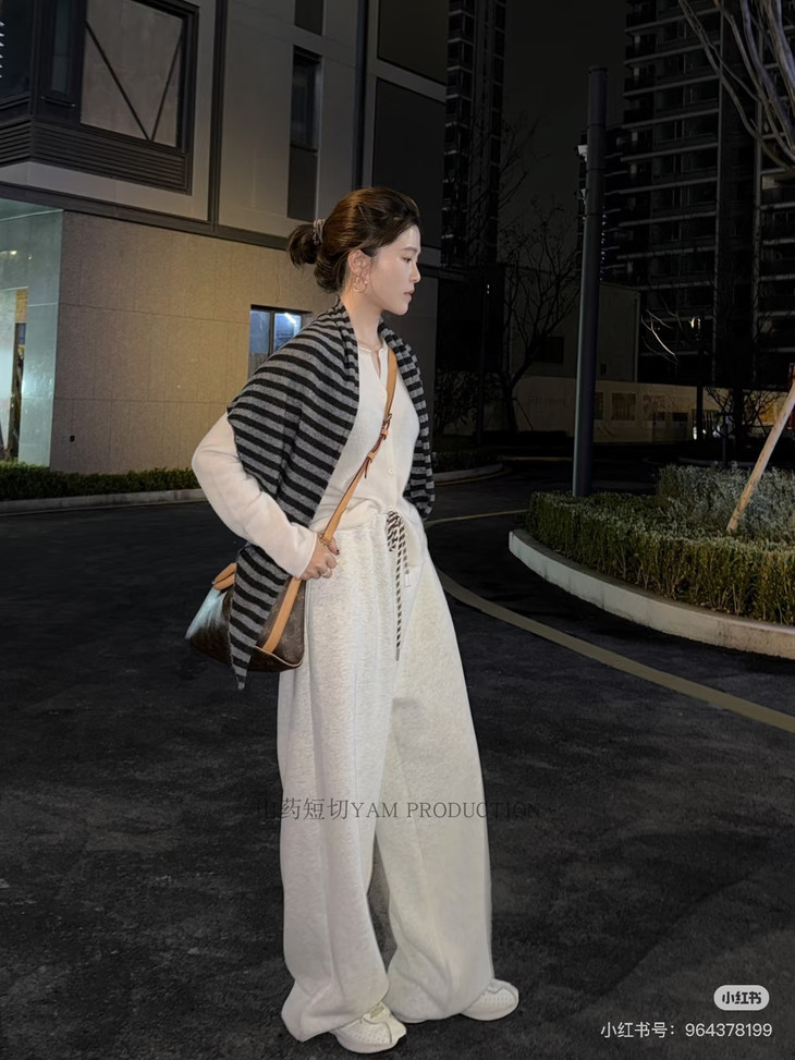 上身还有种又奶又拽的独特气质;而且是加绒的 但是完全不会臃肿;臀部口袋做了刺绣设计 比普通卫裤精致N倍!!