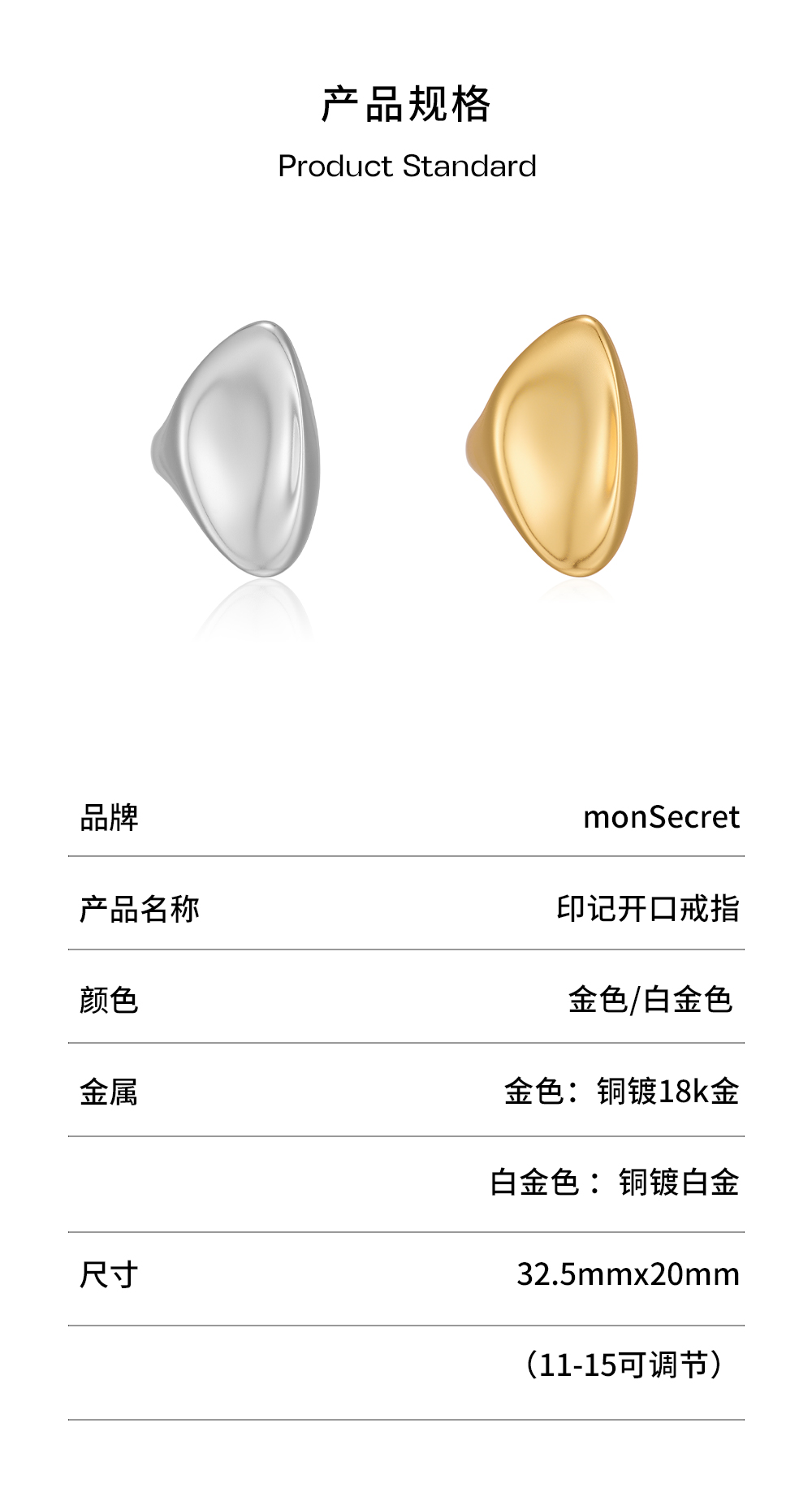 monSecret|PURE0203 印记开口戒指【PURE】 [ 金 / 银 ]