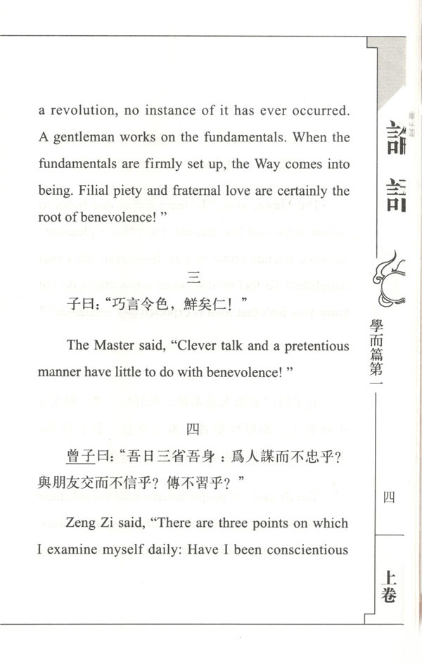 《论语》是集中记载孔子思想言论的权威著作,曾被古人誉为齐家、治国、平天下的宝典,是国内外公认的、最忠实地反映与代表孔子和由他创立的正统儒家学派思想的经典,是人们学习、认识和研究孔子和儒家思想最可靠的优秀的经典根据,素来受到海内外有识之士的厚爱与尊崇。 本套书由中国孔子基金会策划,选用公认的最权威的汉语版《论语》为依据,聘请有关外语专家翻译,中文为中文繁体,外文为译文。我社已经出版了中英、中日、中韩、中俄、中法、中德6种文字,受到广泛好评。以后还将陆续编译出版多种语言与汉语对照版的《论语》,以方便更多不同文化背景的人们去诵读和研究。