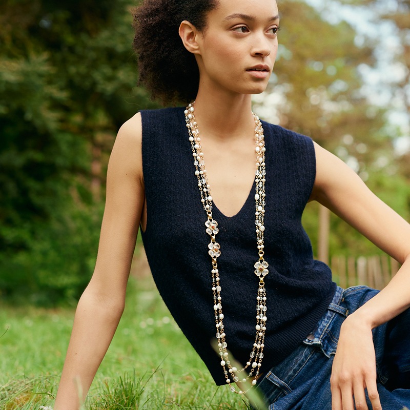 北京仓|Goossens Paris-Trefle-天然水晶 石榴石 长项链(毛衣链)[法国设计师]